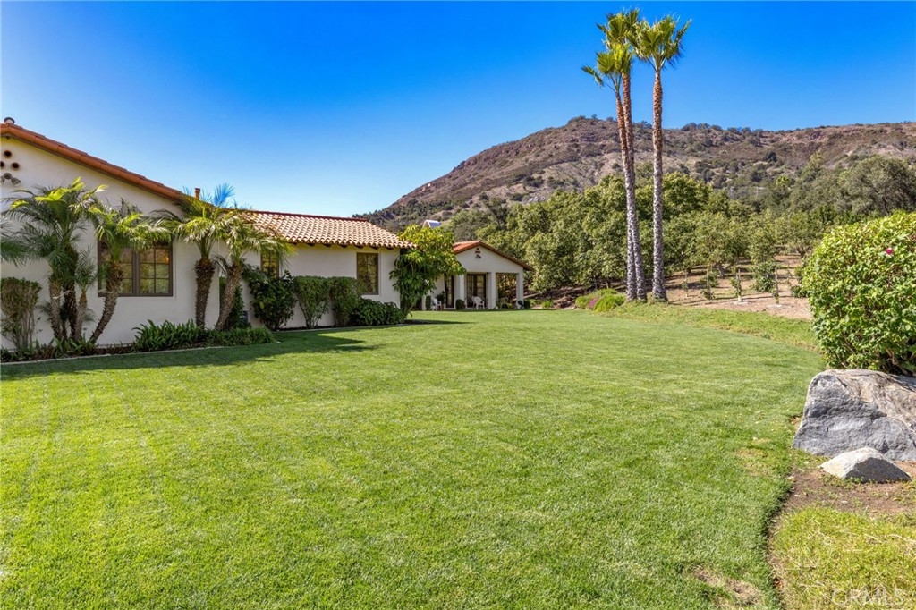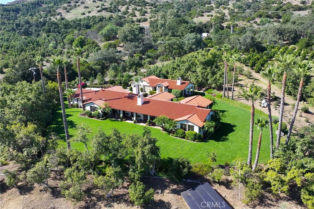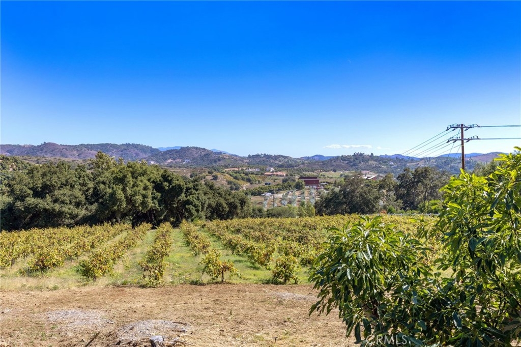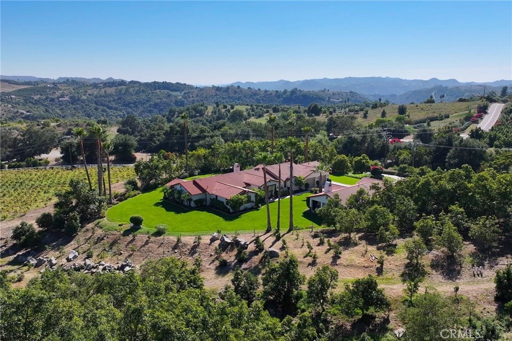 HUGE OPPORTUNITY- AND YOU DON'T NEED TO BE A VET TO ASSUME THIS VA LOAN AT 2.25%! EXQUISITE Single-Story Hacienda Style home nestled in the picturesque De Luz area, offering a serene and luxurious lifestyle on 11.96 sprawling acres. This property is a TRUE paradise, boasting a meticulously maintained Primitivo varietal vineyard and charming guest house. Step into the main house and notice the stunning floor plan- an ENTERTAINER'S DREAM- with an open Living room~ dining room concept where the warm tones seamlessly blend with the natural surroundings visible through 4 sets of French doors opening to MASSIVE terrace. Just off the living room a library suited for the book connoisseur. The heart of the home is the gourmet kitchen, a culinary enthusiast's dream featuring top-of-the-line Viking appliances. Whether a cozy family dinner or a GRAND soirée, this kitchen is fully equipped to cater to your every culinary desire. The main house is comprised of TWO spacious suites designed to provide comfort and tranquility. The Master Bedroom offers a separate en-suite perfect for a nursery or office and opens to the terrace. Master suite also offers an oversized luxurious bathroom, offering an oasis of privacy and relaxation. The Junior suite boasts a large seating area as well as a separate private bathroom. The powder room is elegantly appointed, ensuring guests enjoy the utmost in sophistication. As you step outside through the French doors just off the dining area, a sprawling outdoor haven awaits just across the pool sized yard. The VINEYARD, a labor of love, graces the landscape and offers not only a visual feast but also the potential for crafting your own wines. The gentle rustling of leaves and the sweet fragrance from the family orchard create an enchanting atmosphere, making it an ideal space for leisurely strolls or al fresco gatherings. The guest house is a delightful gem of its own, offering a perfect blend of comfort and independence. This retreat ensures your guests feel welcomed while maintaining their privacy. Whether utilized as an in-law suite, artist's studio, office or income producing rental, the possibilities are endless. The property is adorned with Avocado Trees as well as Golden Nuggets Mandarins. In the De Luz area, where nature's beauty unfolds in every direction, this property stands as a testament to the harmonious coexistence of luxury and nature. Home features paid off solar-with 16 double sided panels.