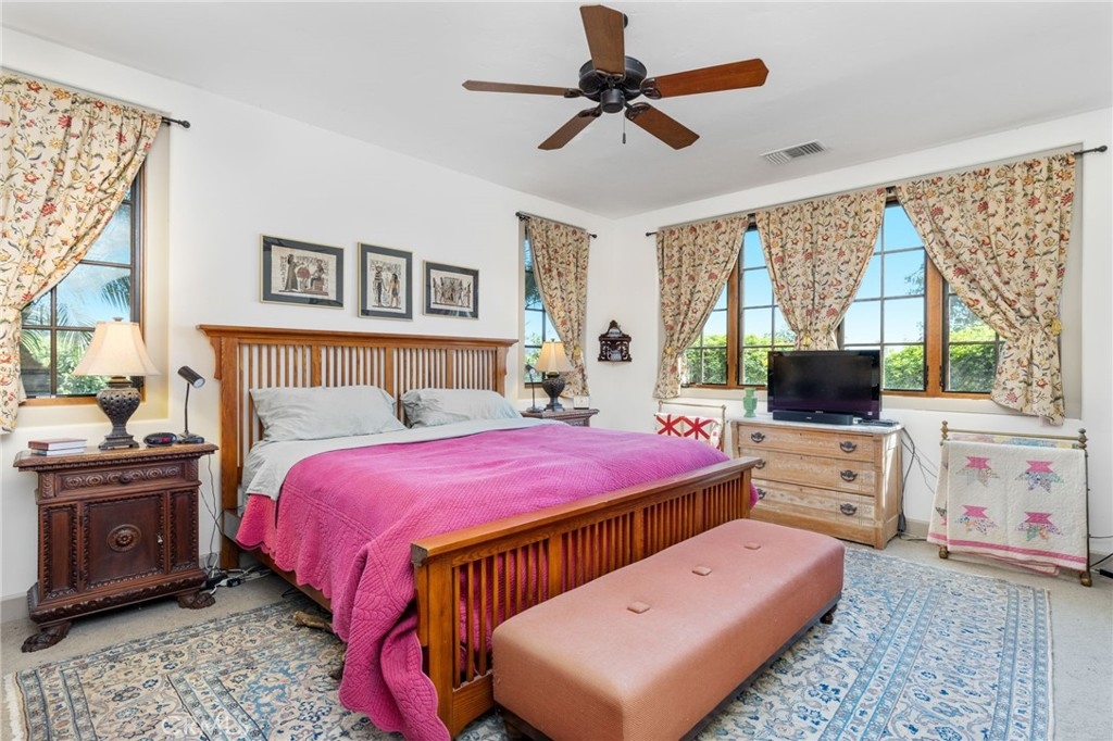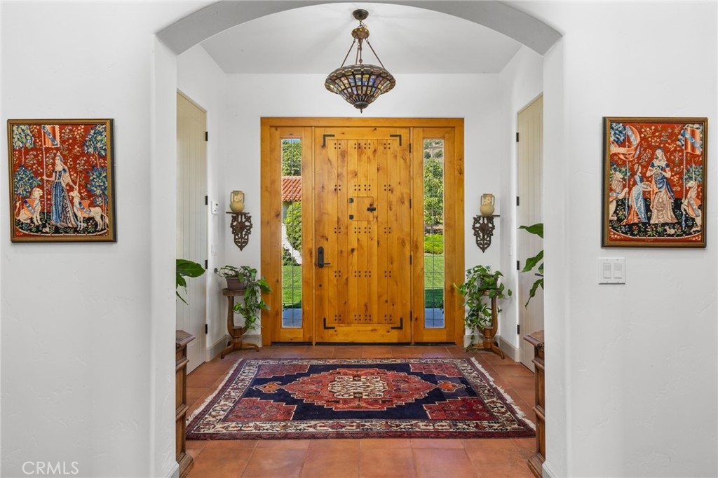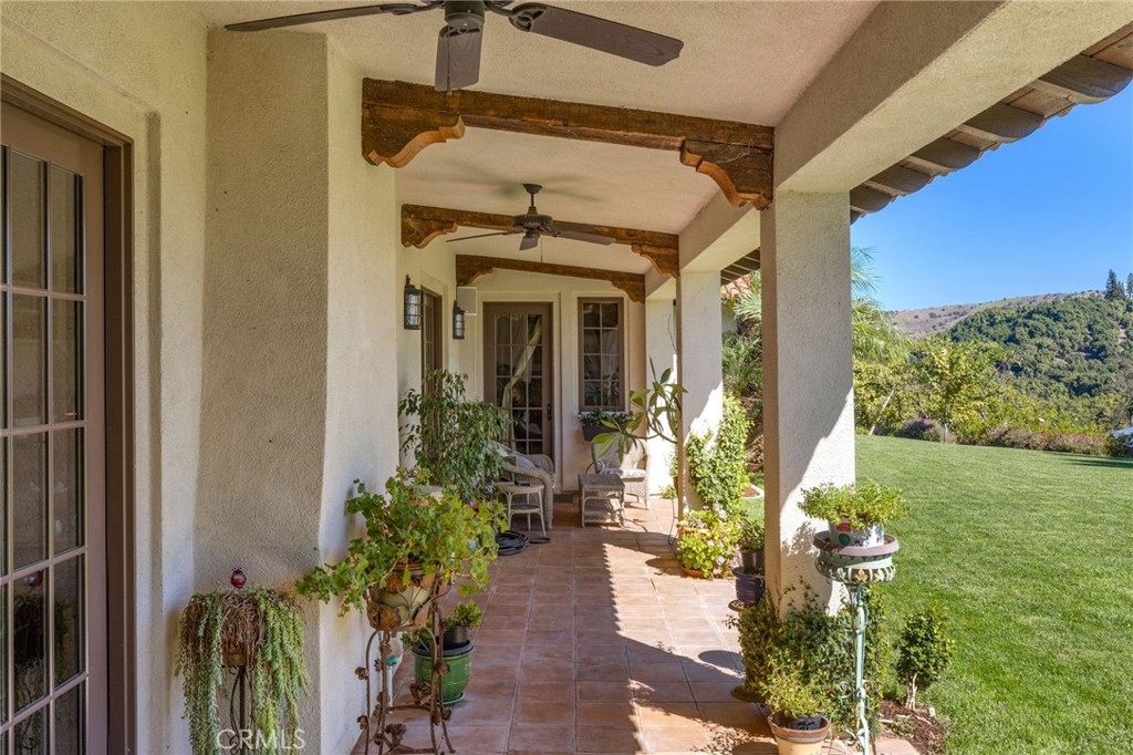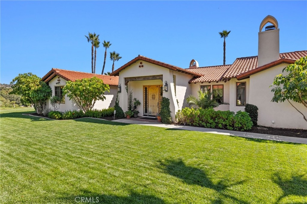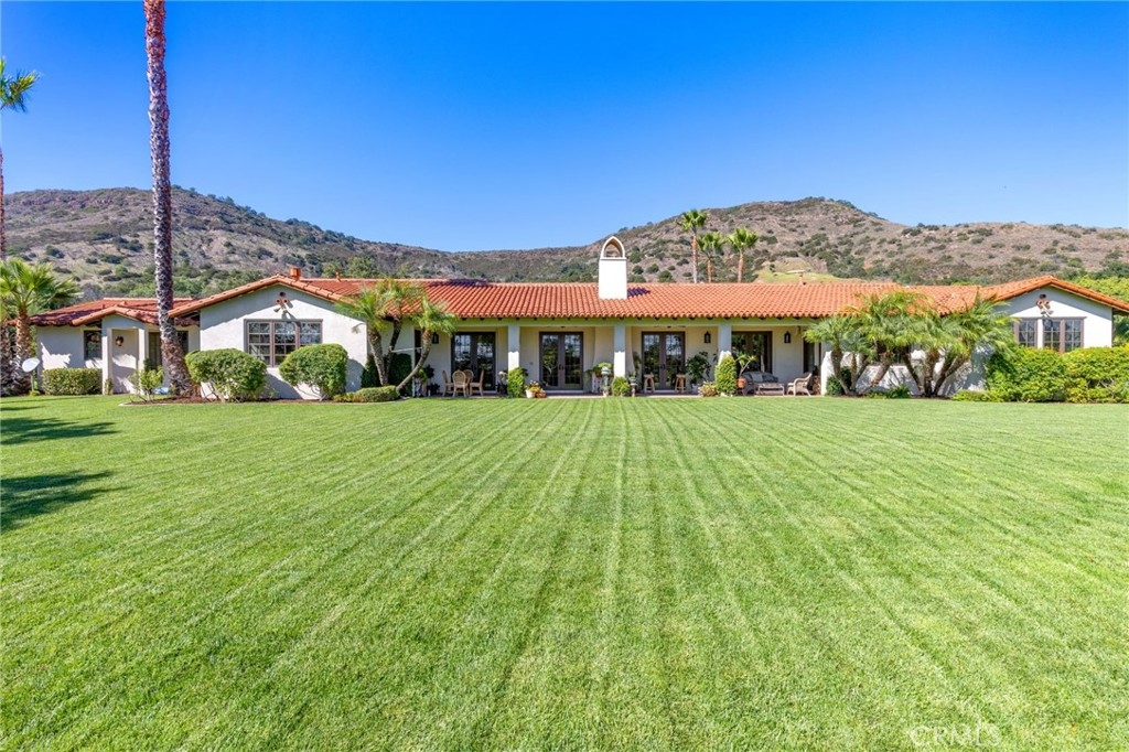 HUGE OPPORTUNITY- AND YOU DON'T NEED TO BE A VET TO ASSUME THIS VA LOAN AT 2.25%! EXQUISITE Single-Story Hacienda Style home nestled in the picturesque De Luz area, offering a serene and luxurious lifestyle on 11.96 sprawling acres. This property is a TRUE paradise, boasting a meticulously maintained Primitivo varietal vineyard and charming guest house. Step into the main house and notice the stunning floor plan- an ENTERTAINER'S DREAM- with an open Living room~ dining room concept where the warm tones seamlessly blend with the natural surroundings visible through 4 sets of French doors opening to MASSIVE terrace. Just off the living room a library suited for the book connoisseur. The heart of the home is the gourmet kitchen, a culinary enthusiast's dream featuring top-of-the-line Viking appliances. Whether a cozy family dinner or a GRAND soirée, this kitchen is fully equipped to cater to your every culinary desire. The main house is comprised of TWO spacious suites designed to provide comfort and tranquility. The Master Bedroom offers a separate en-suite perfect for a nursery or office and opens to the terrace. Master suite also offers an oversized luxurious bathroom, offering an oasis of privacy and relaxation. The Junior suite boasts a large seating area as well as a separate private bathroom. The powder room is elegantly appointed, ensuring guests enjoy the utmost in sophistication. As you step outside through the French doors just off the dining area, a sprawling outdoor haven awaits just across the pool sized yard. The VINEYARD, a labor of love, graces the landscape and offers not only a visual feast but also the potential for crafting your own wines. The gentle rustling of leaves and the sweet fragrance from the family orchard create an enchanting atmosphere, making it an ideal space for leisurely strolls or al fresco gatherings. The guest house is a delightful gem of its own, offering a perfect blend of comfort and independence. This retreat ensures your guests feel welcomed while maintaining their privacy. Whether utilized as an in-law suite, artist's studio, office or income producing rental, the possibilities are endless. The property is adorned with Avocado Trees as well as Golden Nuggets Mandarins. In the De Luz area, where nature's beauty unfolds in every direction, this property stands as a testament to the harmonious coexistence of luxury and nature. Home features paid off solar-with 16 double sided panels.