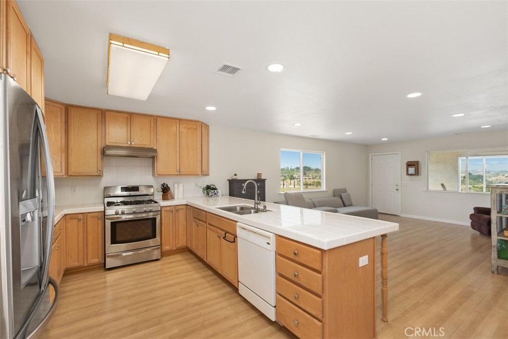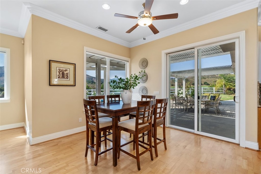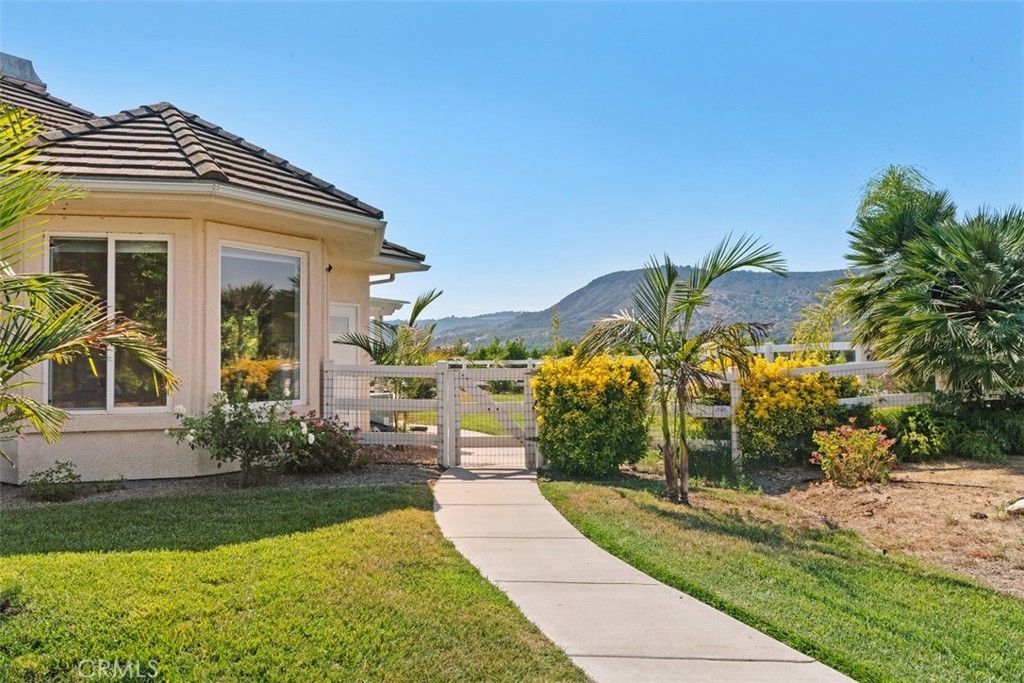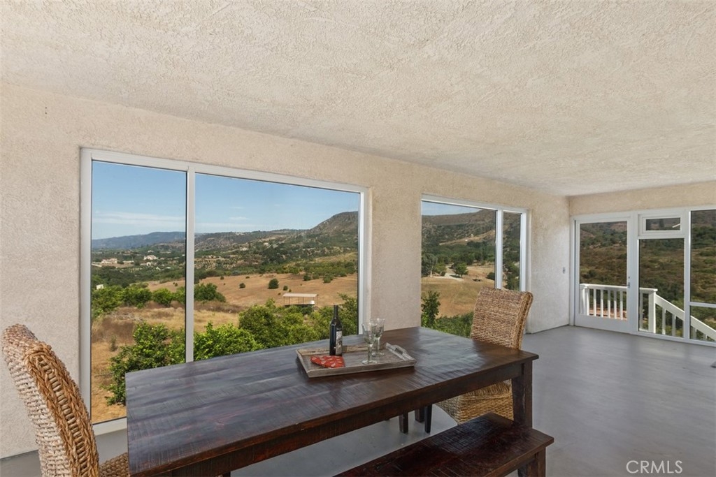 PRICE REDUCTION. This property is located on almost 10 acres in the desirable De Luz community with a 3963 sq.ft. main house plus a 1400 sq.ft. detached guest house. Both homes have amazing views and breathtaking sunsets including views of the local Cross Creek golf course. Other features include a swimming pool and spa, an organic avocado and citrus grove, family orchard, a huge RV garage and a great location with an easy drive to town. The custom built main home has 12ft. high ceilings in the entry with 10ft. ceilings throughout. Features throughout the main house includes wood flooring, custom quality crown molding,built in cabinets and was specifically designed to enjoy the views from almost every room providing lots of natural light throughout. The well designed kitchen includes a large island, granite countertops, newer appliances including double ovens and a sub zero refrigerator plus lots of cabinetry and storage and a walk in pantry. The comfortable family room features a custom built fireplace encased by built in cabinets on either side. The huge private master suite overlooks and opens to the landscaped fenced backyard and pool and spa area. There is a lovely separate formal living room and dining room plus an office with built in cabinets and book shelves. The 4th bedroom with an en suite bathroom is upstairs. Other features include a new water filtration system, newer AC units plus central vac system. The guest house was built in 2006. It features a living room, totally self contained kitchen, two bedrooms plus a full bathroom. It also has an outdoor enclosed living area with surrounding glass windows where you can enjoy amazing views and breathtaking sunsets.It has its own laundry facilities located downstairs in the 40x30 ft. RV garage that also has a workshop area and attic storage. The certified organic grove includes many newer trees including avocados, Kara Kara oranges, pink lemons, and pixi tangerines with almost 5 acres of land to plant a vineyard or add to the grove. Also enjoy a family orchard and vegetable garden including table grapes, lemons, berries, apples, peaches, plums, nectarines, pears, red and sweet onions and tomatoes. The property is completely fenced with a custom gate. A leased solar system for both homes. The main home has a 3 car garage plus there is lots of parking space. This property offers a great lifestyle and location close to the city of Temecula Old town and Wine Country to also enjoy.