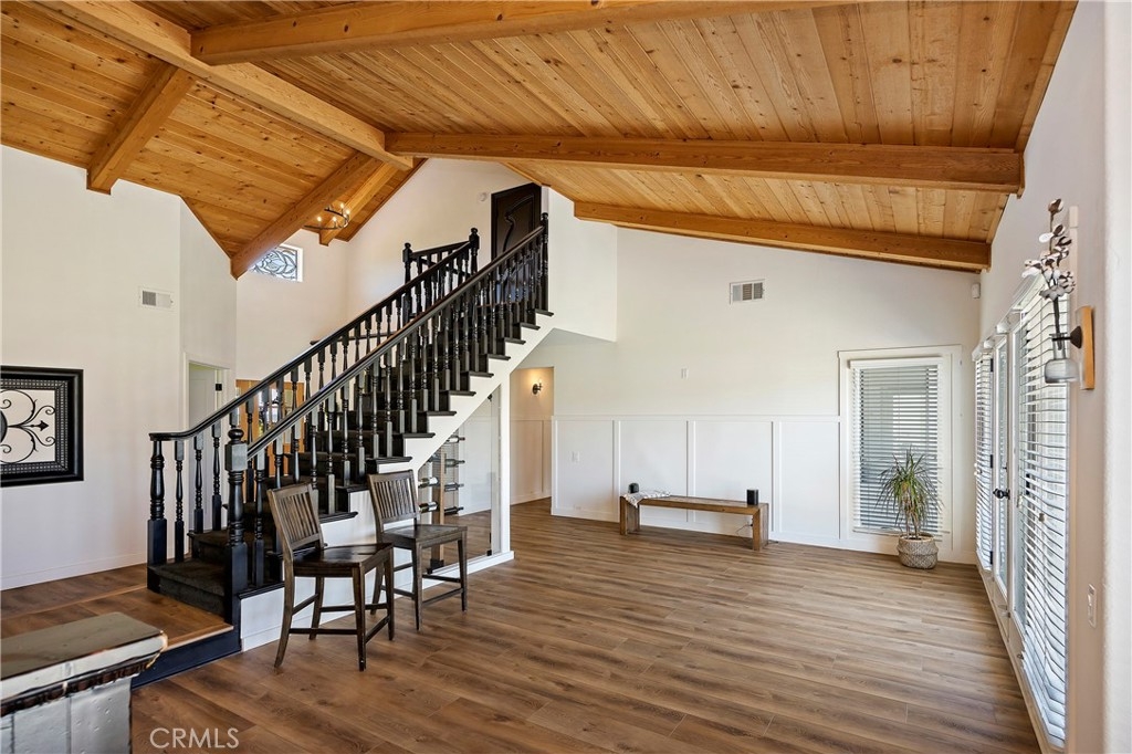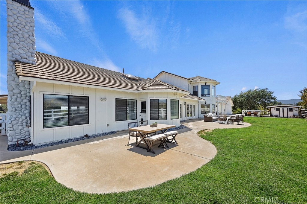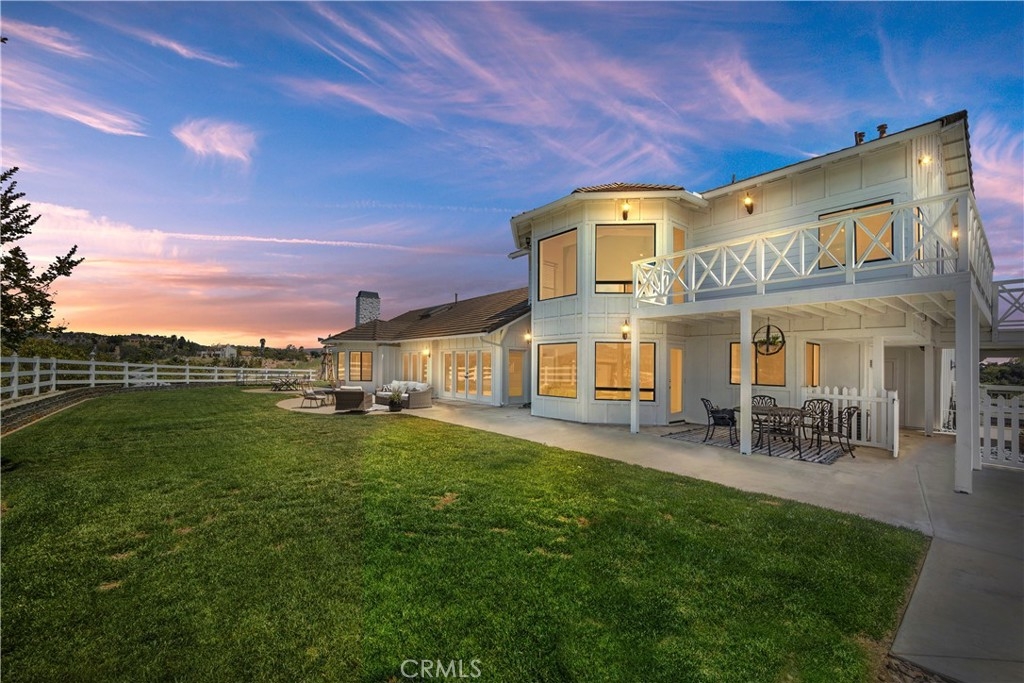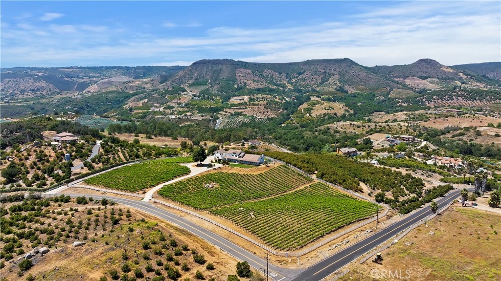 Updated Modern Farmhouse on over 5 1/2 acres on your own private vineyard with amazing panoramic views! Located in prestigious De Luz! Relax in a rocking chair on your front porch while enjoying views of your private vineyard and sunset! Views from almost every room! Main home features 4 bedrooms, plus office, 4 baths with high valued wood beam ceilings and an open floorpan. Light and bright kitchen with a huge quartz island, sub zero refrigerator and freezer, Decor stove with double ovens, wine refrigerator, and walk-in pantry. Great for entertaining! Huge primary suite with private balcony, walk-in closet with built-ins, spacious bathroom with walk-in shower, separate soaking tub, his and her vanities and toilets. Two of the secondary bedrooms feature an en-suite. Separate private studio suite above the garage with private bath, kitchenette and views! Upgrades throughout! Large rear yard with room for a pool. 4-car garage with epoxy floors, electric car charging, built-in cabinets and work bench. Plenty of additional space for toys or RV Parking, sports courts or to add another garage. Great location...approximately 12 minutes from the freeway, shopping and Old Town Temecula! Be to San Diego or Orange County in an hour! Make an offer!! One of the lowest price per sqft in De Luz!