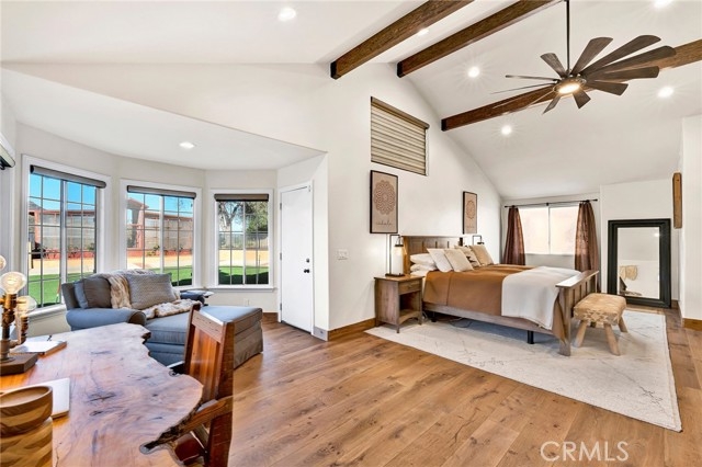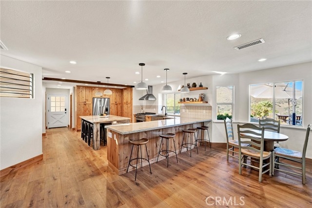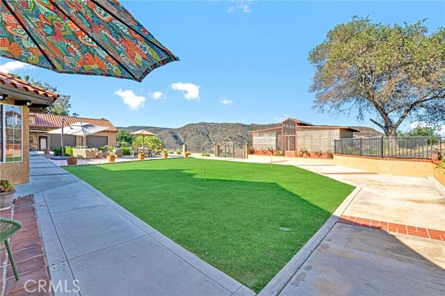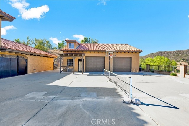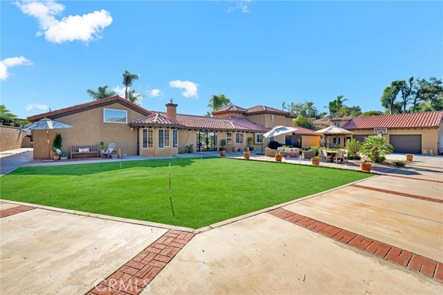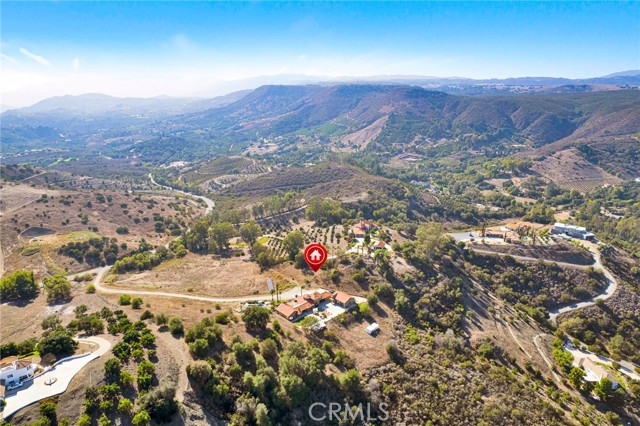 Welcome home to this stunning Mediterranean-inspired estate, set amidst the breathtaking views of Temecula Wine Country. Nestled on 8.63 peaceful acres of rolling land, this property offers the perfect balance of tranquility and luxury. The main home spans a generous 3,579 square feet and has recently undergone an extensive, high-end remodel. It features a beautifully appointed main-level primary suite, a junior suite, a guest bathroom, and a separate laundry room with ample storage. Upstairs, you’ll find an additional suite with two bedrooms, each with its own closet, and a shared full bathroom. The heart of the home is the chef’s kitchen, complete with top-of-the-line appliances, stunning "Knotty Alderwood" cabinetry, sleek granite countertops, and a cozy breakfast nook. The great room boasts a stately Venetian plaster-style fireplace, while the formal dining area offers the perfect setting for dinner parties. Step into the living room with a second fireplace, adding elegance to the living spaces. Throughout the home, you’ll enjoy beautiful engineered hardwood flooring, complemented by gorgeous tile and stone accents in the bathrooms. Multiple patios, including an expansive covered patio system, provide plenty of space for outdoor living. The outdoor cabana-style room with a mounted TV is perfect for entertaining, while the uncovered firepit patio overlooks your sparkling pool and spa—ideal for relaxing and unwinding. For extra versatility, an attached bonus room near the covered carport offers a great space for additional sleeping quarters, a gym, or a flexible room to suit your needs. The detached, two-story, 6-car garage is a true standout, featuring roll-up doors, a bonus/office space with a beautiful cabinet and sink, and an additional upstairs studio. The amazing backyard has panoramic views, multiple patios, planter boxes and pots around the backyard, along with a pickleball area and putting green. Additionally, there is a spacious chicken and small animal coop, plus 2 more small animal stalls on the lower level. With its stunning outdoor spaces, captivating views, and quality upgrades throughout, this property offers everything you could want in a home. There’s truly no place like it!