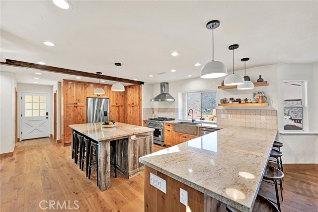 6 Burner Stove, Dishwasher, Disposal, Microwave, Propane Oven, Propane Cooktop, Water Heater, Water Line to Refrigerator, Water Purifier