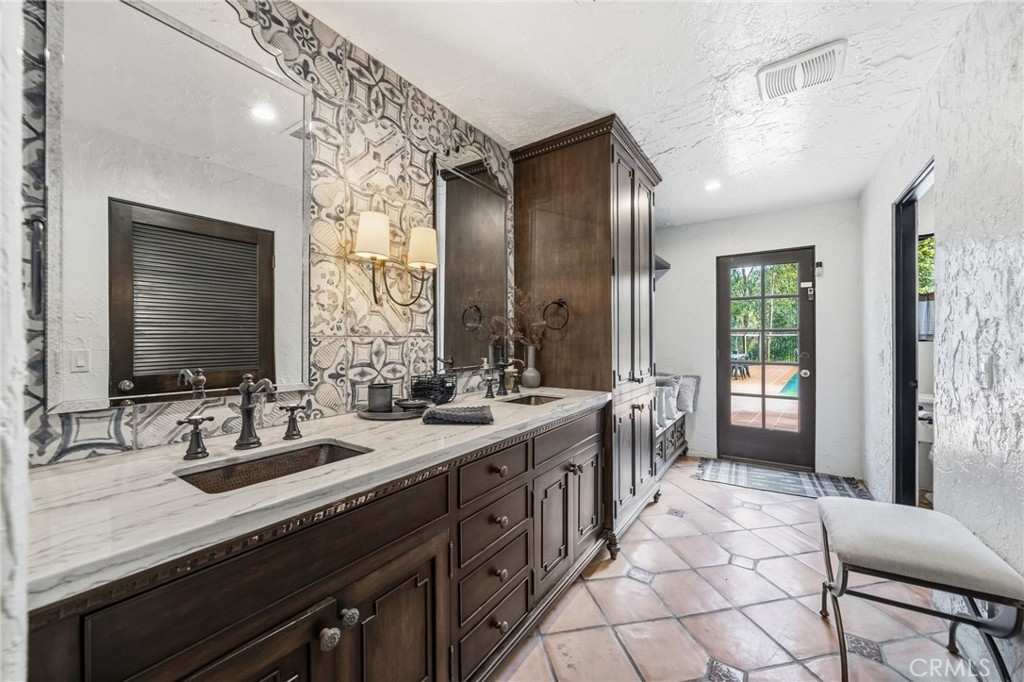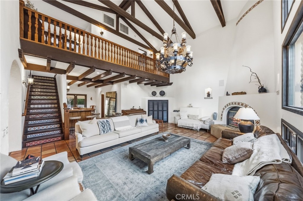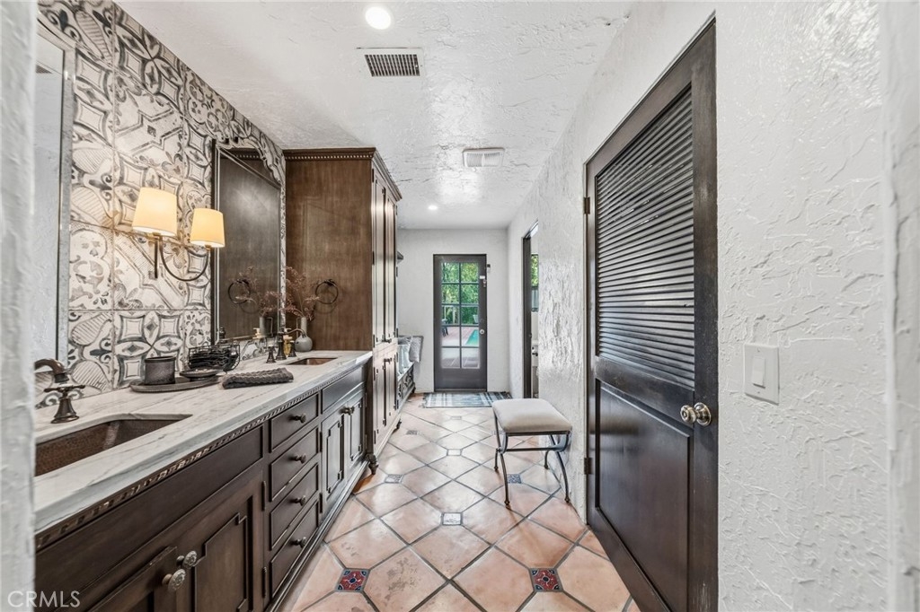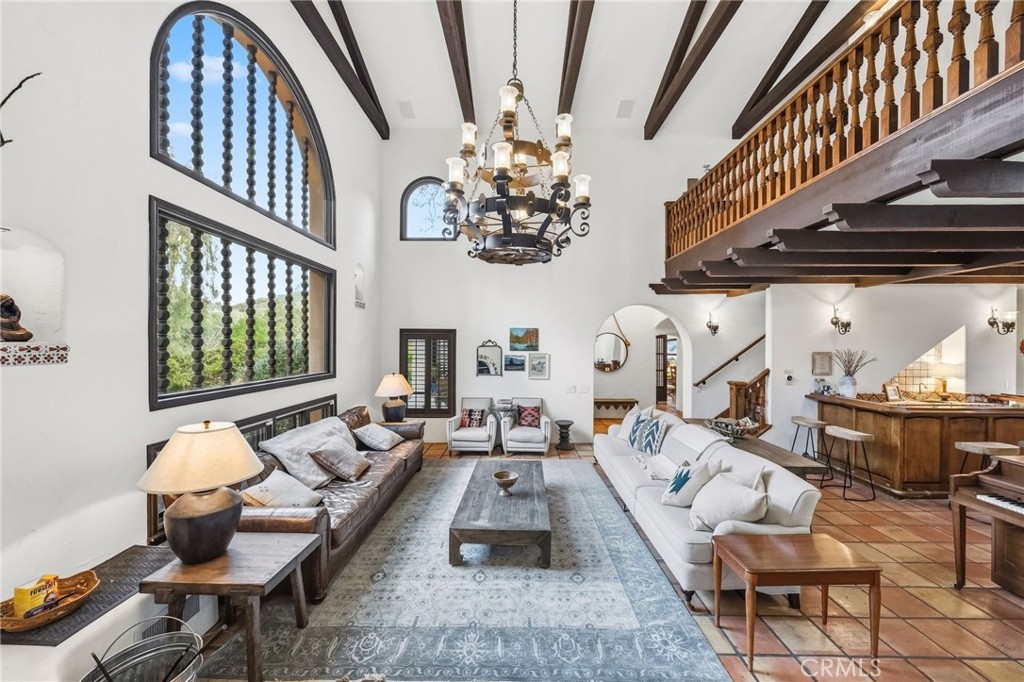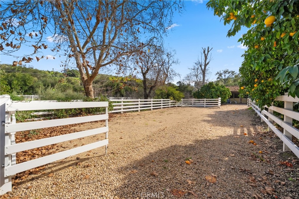 Just 7 minutes from Old Town Temecula, this gated Spanish-inspired estate offers rare privacy and resort-style living with a 4 bedroom, 4.5 bath custom main home and a casita, pool and spa, sauna, horse facilities, barn —set on five serene acres. Welcome to La Masía de las Robles, a tranquil sanctuary surrounded by majestic Engelmann Oak trees. Enter through an electronic gate, cross a stone bridge, and arrive at a home that feels peaceful, grounded, and restorative. The main residence showcases timeless Spanish architecture with a hand-carved wooden front door, graceful arches, stained glass windows, skylights, and soaring beam ceilings. Saltillo tile floors, custom art niches, dramatic chandeliers, and 3 wood burning fireplaces create warmth and character throughout. The kitchen blends beauty and function with custom Spanish tile, a large center island with butcher-block detail, new double ovens, a walk-in pantry, breakfast nook, plantation shutters, and calming views of the surrounding property. Recent upgrades include HVAC with 3 zones, 40 panel solar array and 1 acre sustainable garden of native plants. A serene primary-style suite features a fireplace, fountain views, spa-like bath, walk-in cedar closet, and a French door opening directly to the pool, spa, and sauna. An additional downstairs bedroom opens to the outdoor retreat, with an adjacent full bath featuring hand-painted details. An indoor laundry room and half bath complete the main level. Upstairs offers two en suite bedrooms that are spacious and each have beautifully finished baths including a clawfoot tub and large steam shower. One suite opens to a private balcony and patio. The grounds feel like a private nature retreat, with walking paths, mature oaks, meditation labyrinth, fruit trees including pink grapefruit, gardens, and a seasonal creek. The pool, spa, and outdoor sauna are tucked into a peaceful setting ideal for relaxation and renewal. Beyond a wrought iron gate sits a private casita with its own patio, kitchenette, and full bath. Equestrian amenities include a three-stall barn with turnouts, office space, multiple fenced pastures, vinyl fencing, shade trees, a storage shed, and a chicken coop. This property is the essence of peace, wellness, and privacy—an ideal retreat setting just minutes from Temecula’s dining, wineries, and Old Town. A truly rare opportunity to own a serene estate where nature and thoughtful design live in harmony.