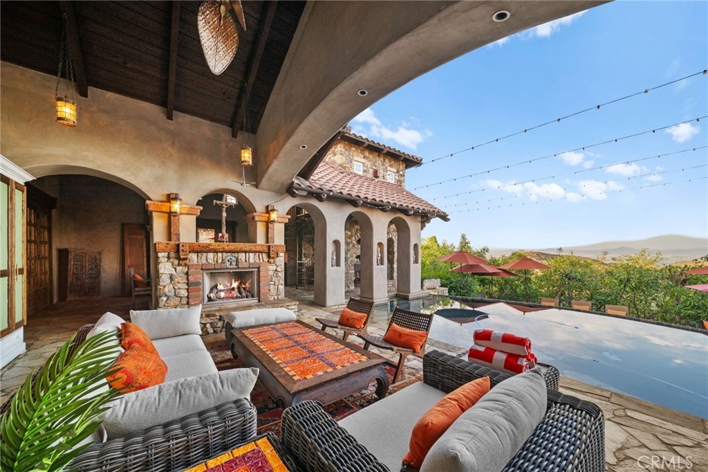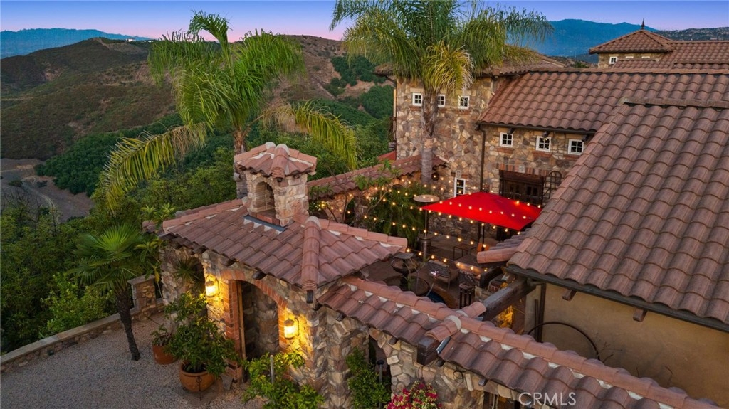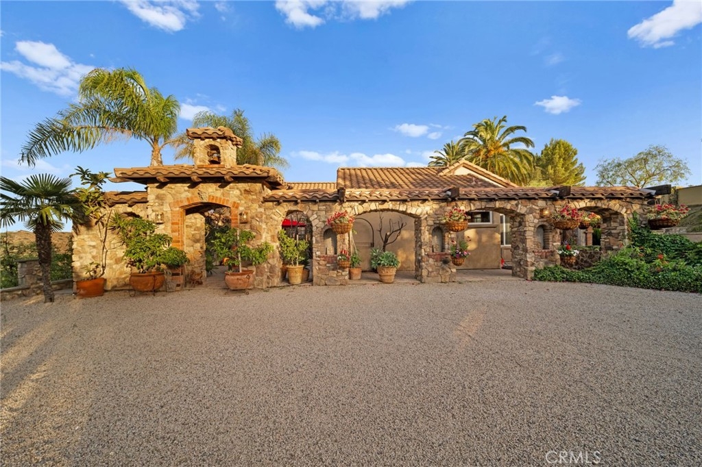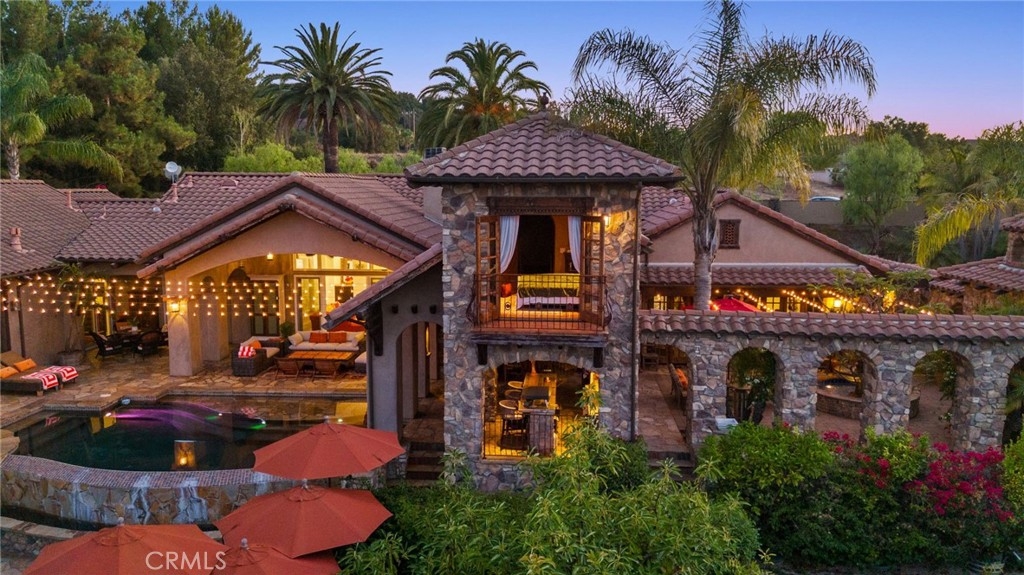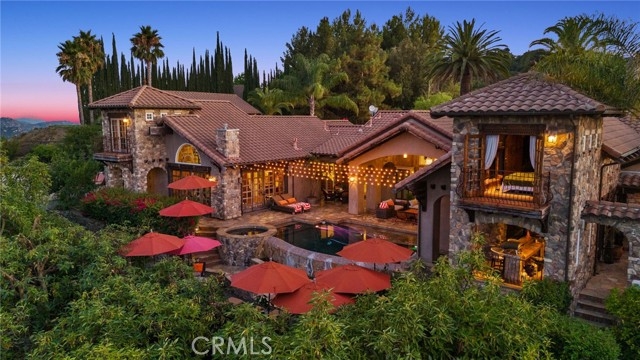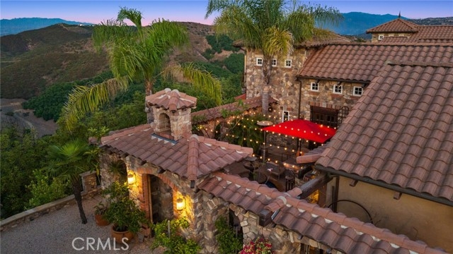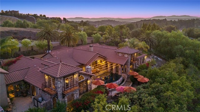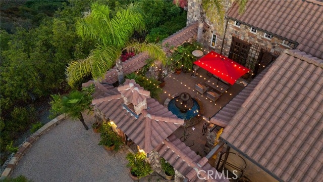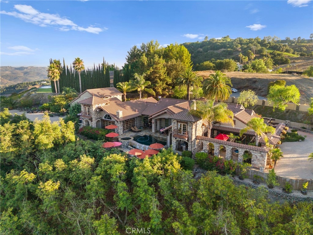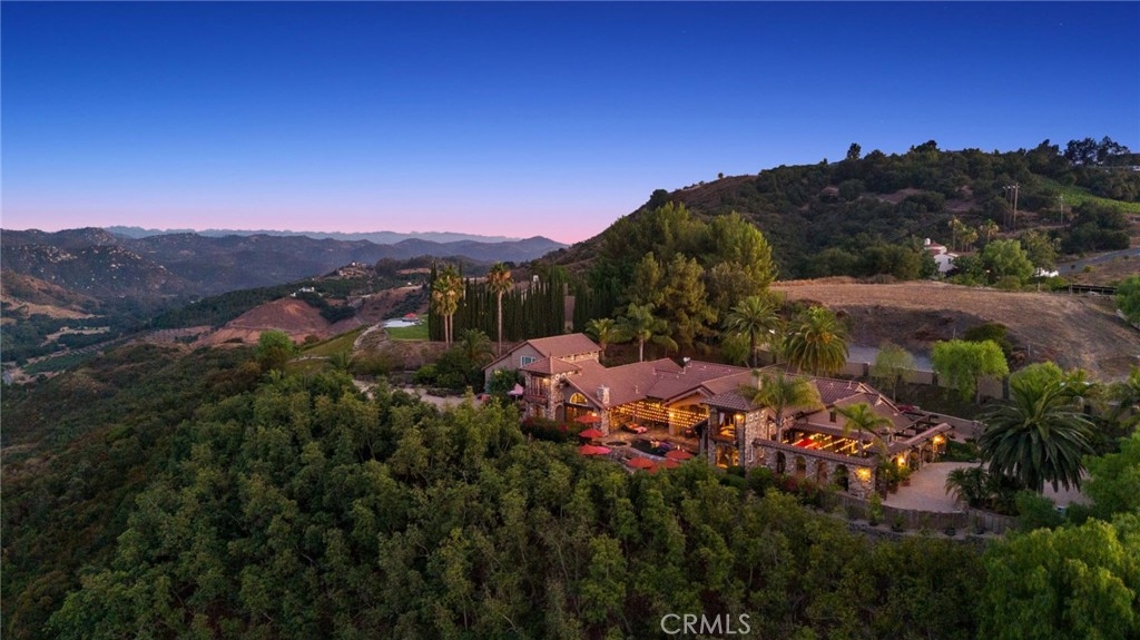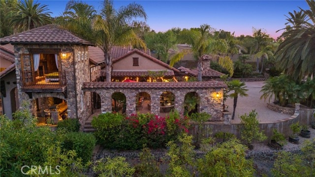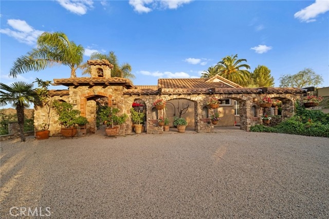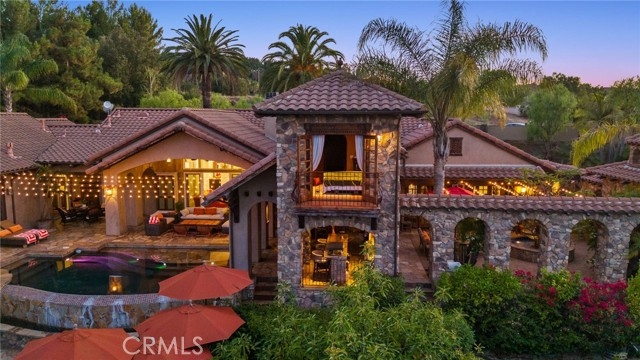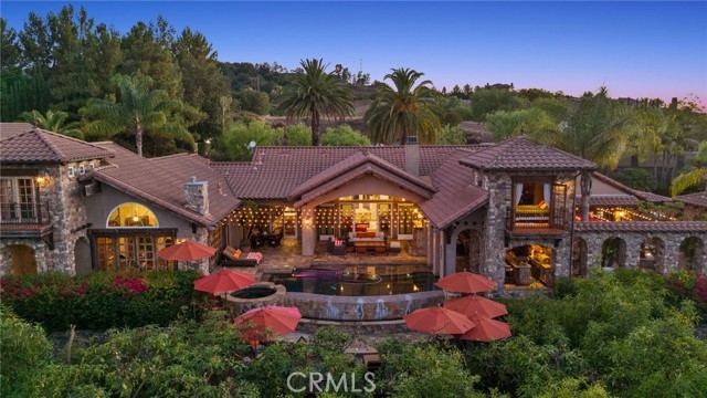 Tuscan Villa in De Luz with stunning views on 5.72 acres! Come see 27590 Morning Glory Circle in Temecula, California, where morning clouds are beneath you and cotton candy sunsets fill the evening skies. If Romeo and Juliet were still alive this would be their home. It's more like a castle set on the ridge over looking the town and valleys of Temecula below. This stunning 4 bedroom, 3 bathroom estate spans over 4300 square feet and exudes the charm of a Tuscan villa with custom wood, stone and brick work throughout. Situated on a sprawling 5-acre lot, the property features expansive views of rolling hills and fields of clouds, allowing you to breathe in the crisp, clean air of the countryside. The kitchen is a chef's dream featuring ALL NEW APPLIANCES, walk-in pantry, Jenn Air 6 burner stove, Sub Zero Refrigerator, Jenn Air Dishwasher, Wine Refrigerator with drawers, Brick Fire Pizza Oven, Kitchen Aid Warming Drawer and a Trash Compactor. The home includes two elegant spiral staircases that lead to private rooms, each offering beautiful, uninterrupted views of the surrounding landscape and evening city lights. The main bedroom is conveniently located on the first floor, providing easy access and added privacy. There are 8 fireplaces throughout the home located both inside and outside of the estate. Guest bedrooms walk out to their own courtyards decorated with string lighting and water fountains. For those who enjoy hobbies or need additional space, the property includes a dedicated workshop, perfect for creative projects or storage. Additionally, a luxurious theater room offers the perfect setting for entertainment and relaxation. Multiple bar areas both inside and outside to entertain your family and guests. Home has dual washer/dryer hook ups located in the interior laundry room. Herb garden located on the south side of the property with plenty of room for your organic veggies.