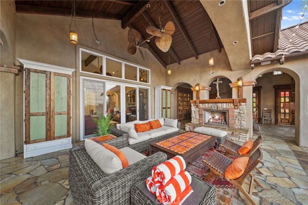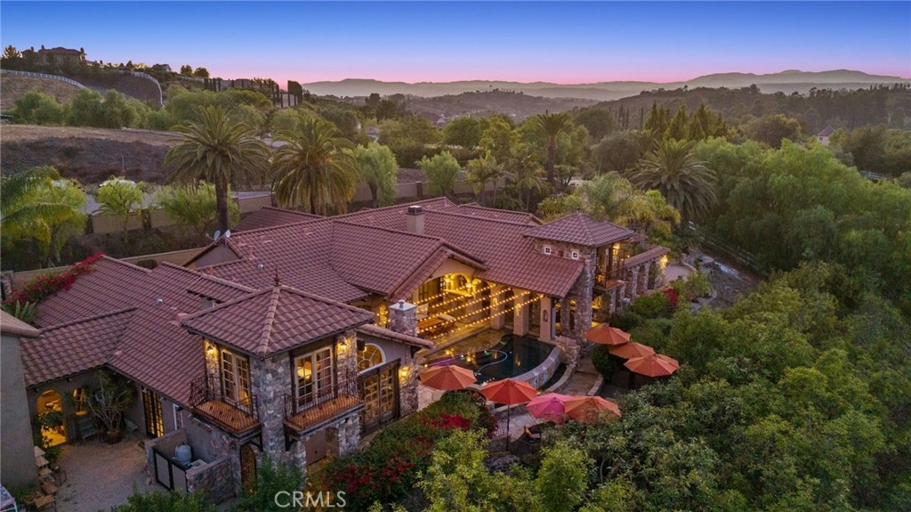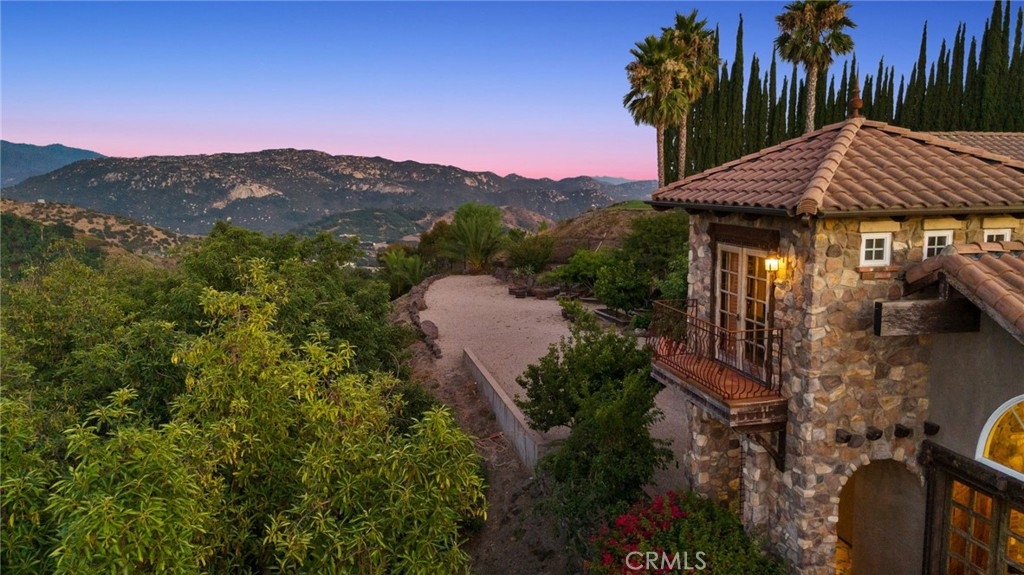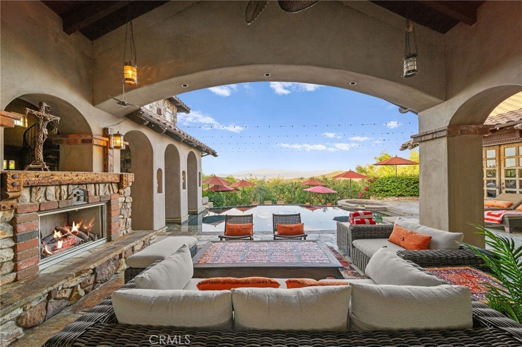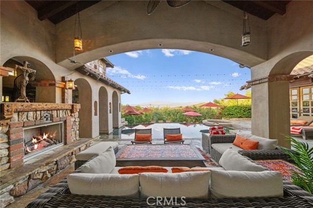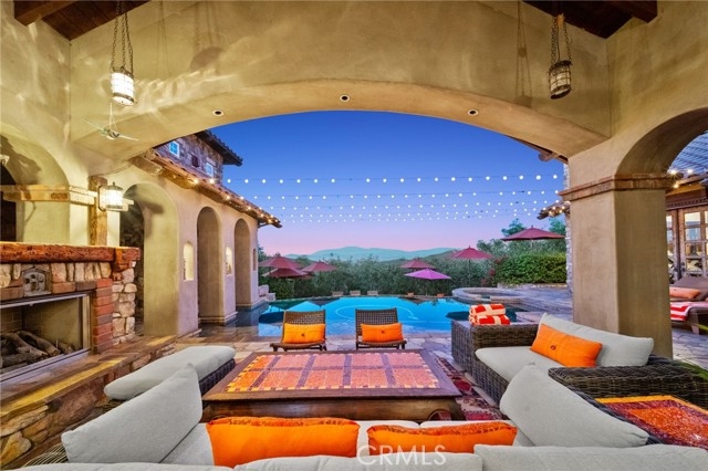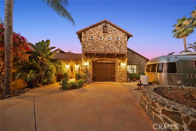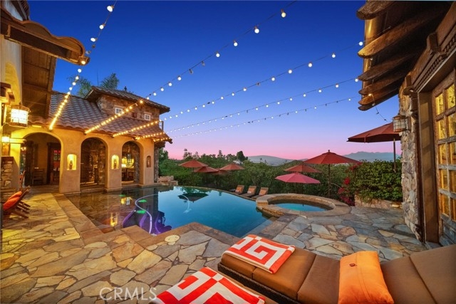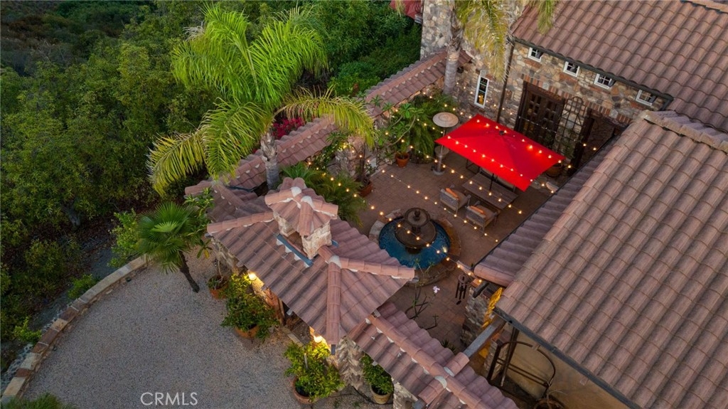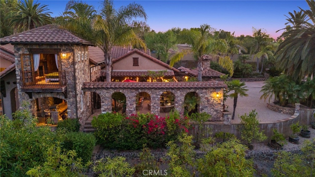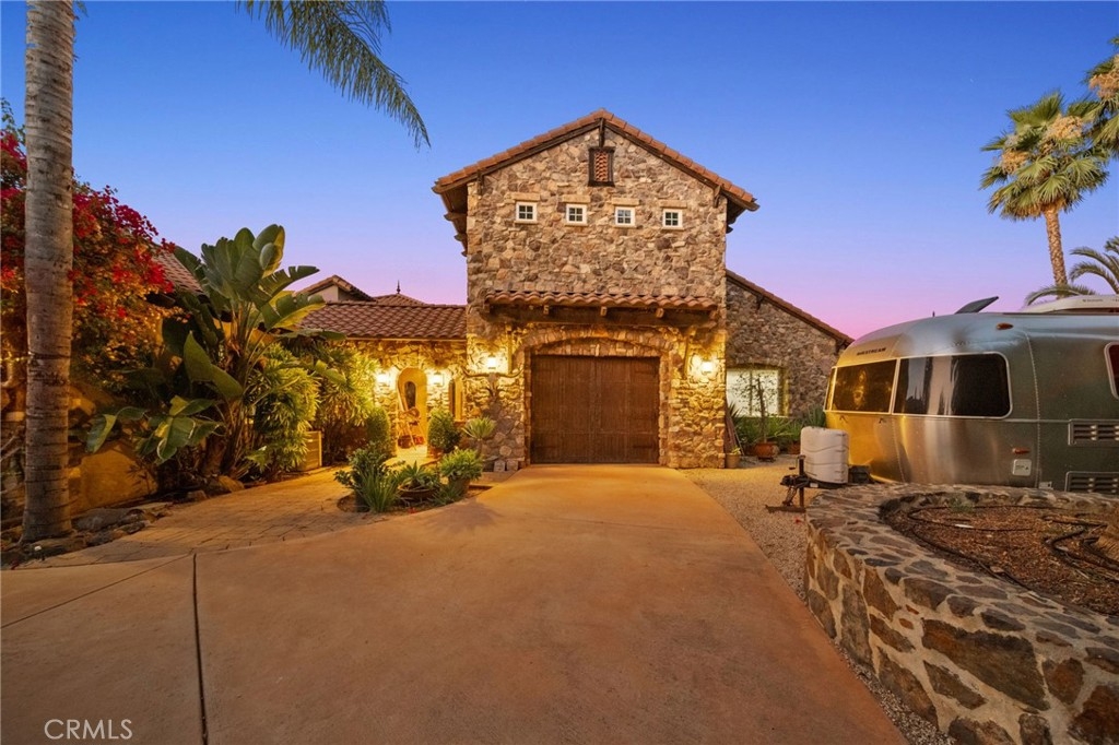 Tuscan Villa in De Luz with stunning views on 5.72 acres! Come see 27590 Morning Glory Circle in Temecula, California, where morning clouds are beneath you and cotton candy sunsets fill the evening skies. If Romeo and Juliet were still alive this would be their home. It's more like a castle set on the ridge over looking the town and valleys of Temecula below. This stunning 4 bedroom, 3 bathroom estate spans over 4300 square feet and exudes the charm of a Tuscan villa with custom wood, stone and brick work throughout. Situated on a sprawling 5-acre lot, the property features expansive views of rolling hills and fields of clouds, allowing you to breathe in the crisp, clean air of the countryside. The kitchen is a chef's dream featuring ALL NEW APPLIANCES, walk-in pantry, Jenn Air 6 burner stove, Sub Zero Refrigerator, Jenn Air Dishwasher, Wine Refrigerator with drawers, Brick Fire Pizza Oven, Kitchen Aid Warming Drawer and a Trash Compactor. The home includes two elegant spiral staircases that lead to private rooms, each offering beautiful, uninterrupted views of the surrounding landscape and evening city lights. The main bedroom is conveniently located on the first floor, providing easy access and added privacy. There are 8 fireplaces throughout the home located both inside and outside of the estate. Guest bedrooms walk out to their own courtyards decorated with string lighting and water fountains. For those who enjoy hobbies or need additional space, the property includes a dedicated workshop, perfect for creative projects or storage. Additionally, a luxurious theater room offers the perfect setting for entertainment and relaxation. Multiple bar areas both inside and outside to entertain your family and guests. Home has dual washer/dryer hook ups located in the interior laundry room. Herb garden located on the south side of the property with plenty of room for your organic veggies.