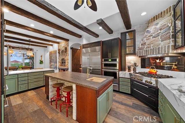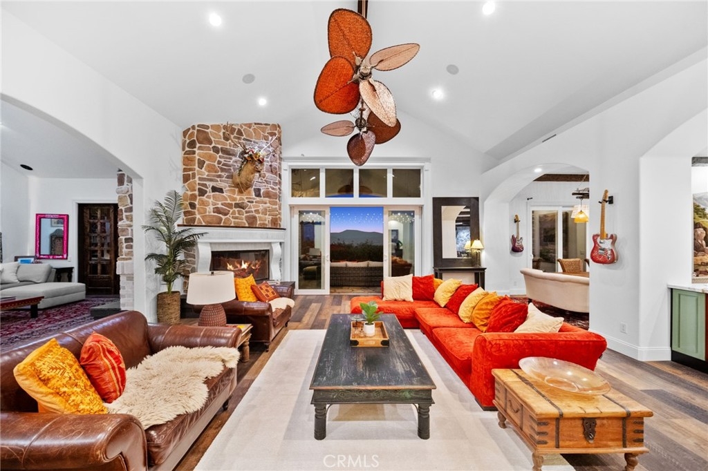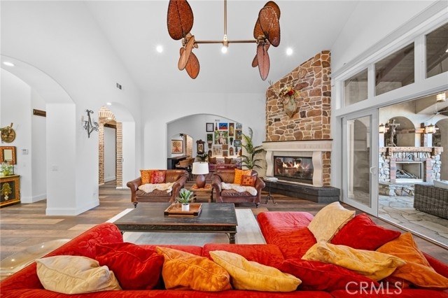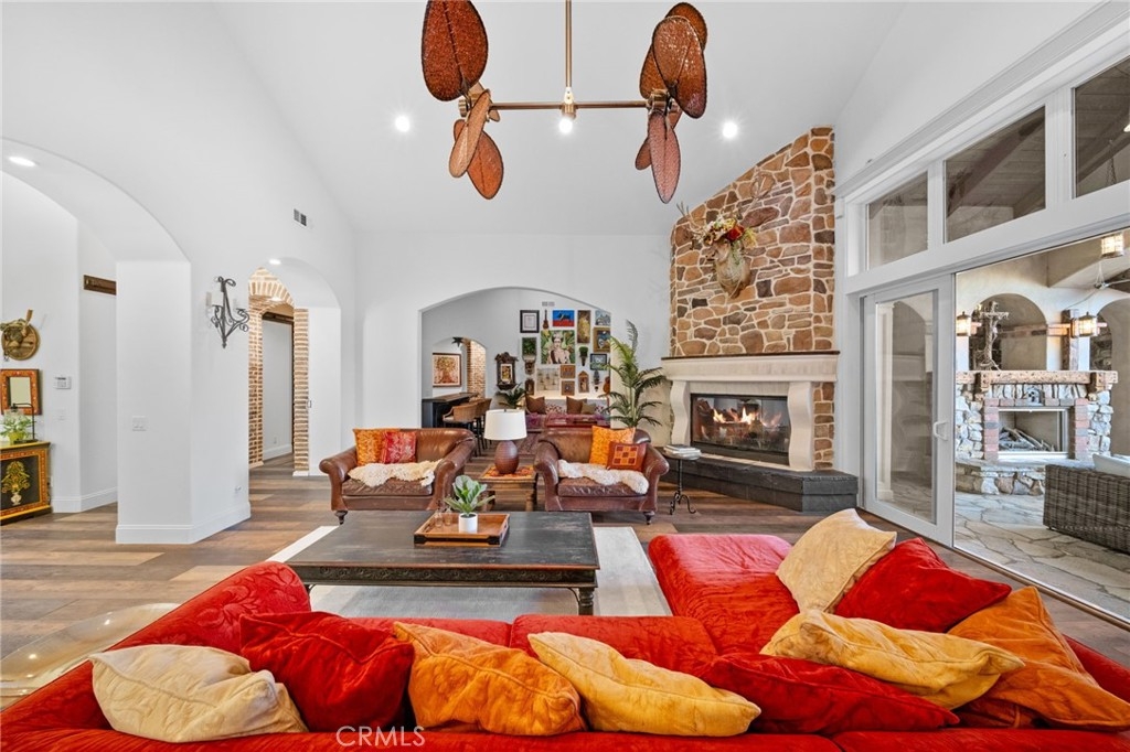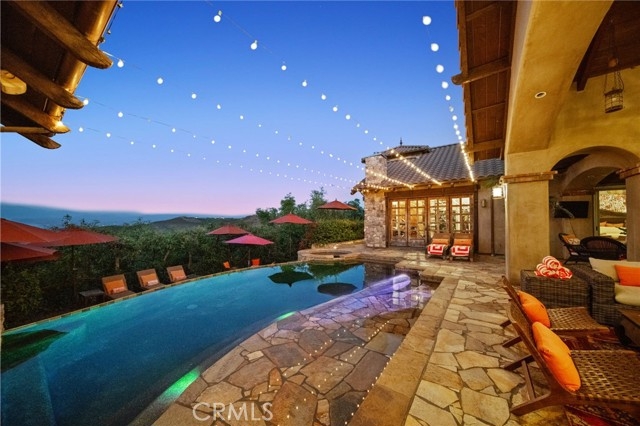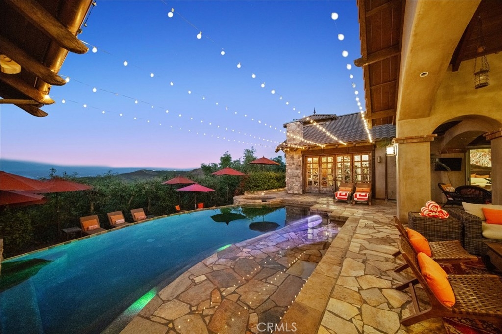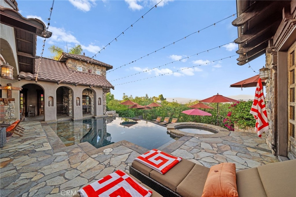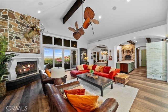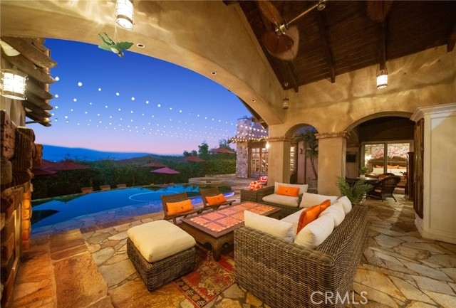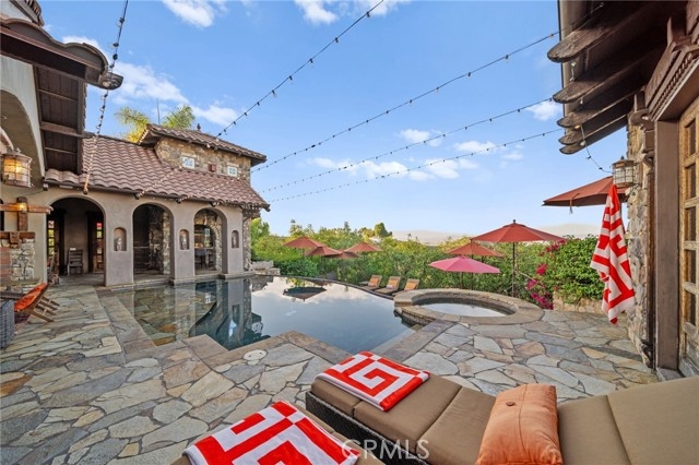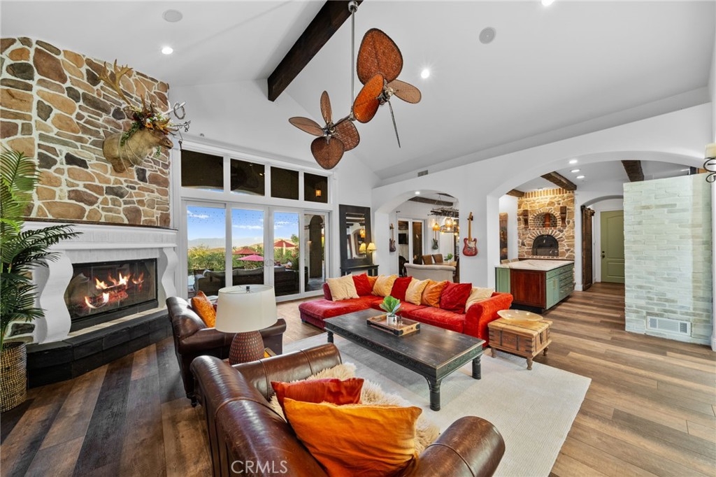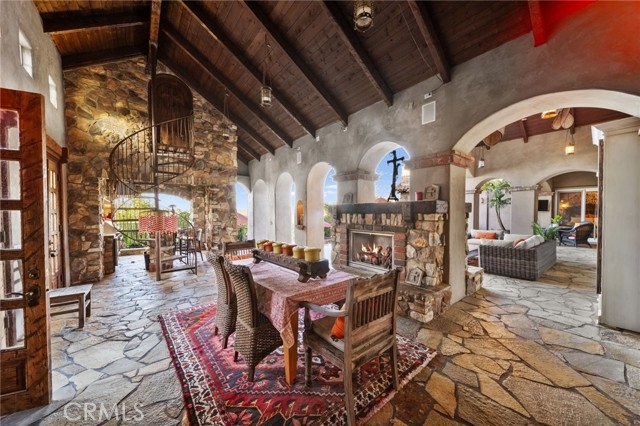 Tuscan Villa in De Luz with stunning views on 5.72 acres! Come see 27590 Morning Glory Circle in Temecula, California, where morning clouds are beneath you and cotton candy sunsets fill the evening skies. If Romeo and Juliet were still alive this would be their home. It's more like a castle set on the ridge over looking the town and valleys of Temecula below. This stunning 4 bedroom, 3 bathroom estate spans over 4300 square feet and exudes the charm of a Tuscan villa with custom wood, stone and brick work throughout. Situated on a sprawling 5-acre lot, the property features expansive views of rolling hills and fields of clouds, allowing you to breathe in the crisp, clean air of the countryside. The kitchen is a chef's dream featuring ALL NEW APPLIANCES, walk-in pantry, Jenn Air 6 burner stove, Sub Zero Refrigerator, Jenn Air Dishwasher, Wine Refrigerator with drawers, Brick Fire Pizza Oven, Kitchen Aid Warming Drawer and a Trash Compactor. The home includes two elegant spiral staircases that lead to private rooms, each offering beautiful, uninterrupted views of the surrounding landscape and evening city lights. The main bedroom is conveniently located on the first floor, providing easy access and added privacy. There are 8 fireplaces throughout the home located both inside and outside of the estate. Guest bedrooms walk out to their own courtyards decorated with string lighting and water fountains. For those who enjoy hobbies or need additional space, the property includes a dedicated workshop, perfect for creative projects or storage. Additionally, a luxurious theater room offers the perfect setting for entertainment and relaxation. Multiple bar areas both inside and outside to entertain your family and guests. Home has dual washer/dryer hook ups located in the interior laundry room. Herb garden located on the south side of the property with plenty of room for your organic veggies.