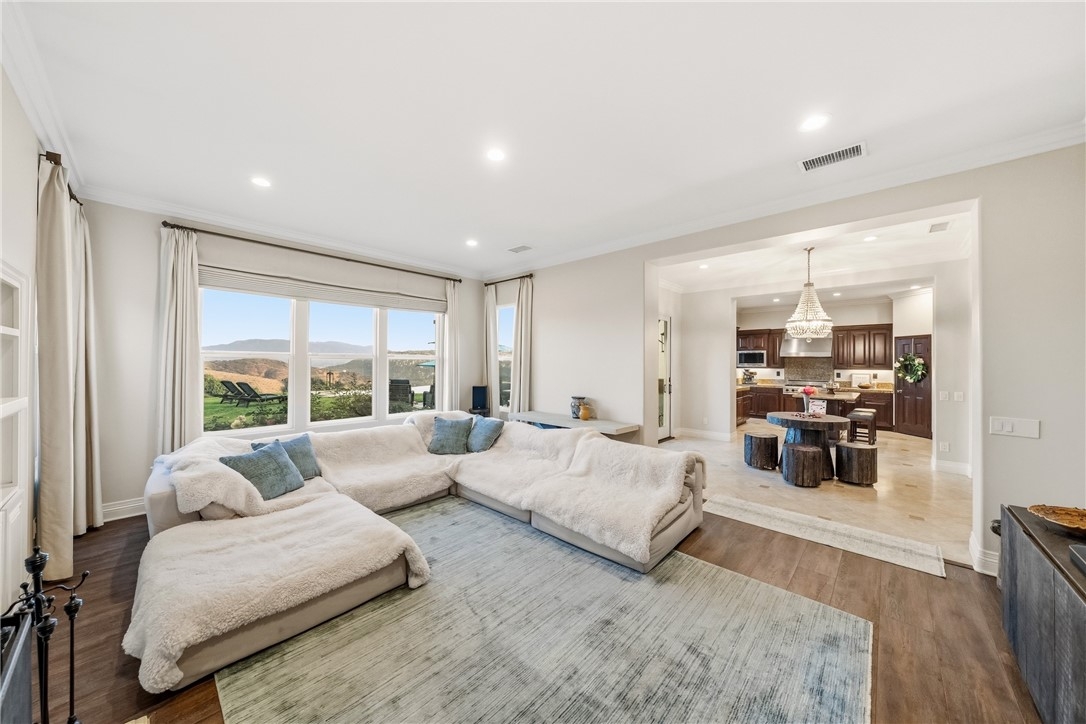 Beyond a private gated entrance lies this exceptional, Single Level, French Country Estate offering 4 Bedrooms, 3.5 Bathrooms, 3844 Sq Ft, (2) 2-Car Garages and a Salt Water Infinity Edge Pool. It's Located at the end of a cul-de-sac on one of De Luz’s most prestigious streets & set on approx 5.7 Acres of beautifully landscaped grounds, with over 150Ft of towering Italian Cypress. Enter into an elegant foyer illuminated by cascading chandeliers, soaring vaulted ceilings, travertine floors, crown molding, and coved architectural details that set the tone for timeless sophistication. This thoughtfully designed Estate features Formal Living & Dining Rooms, an Executive Office, Gourmet Kitchen, Informal Dining & Family Rooms, all blending classic elegance with modern comfort. The Kitchen is the heart of the home featuring a center island, dark brown triple-milled cabinetry with soft-close drawers, granite countertops, & convenient pull-out shelving. The space is equipped with stainless steel appliances, including a six-burner Viking cooktop, overhead range, double ovens, & a walk-in pantry that offers ample storage for all your culinary essentials. The Kitchen opens to an Informal Dining area and Family Room, ideal for everyday living. The primary suite occupies the south wing of the home, serving as a private retreat complete with a fireplace, direct access outdoors, dual walk-in closets, dual sinks, a vanity, walk-in shower, a private water closet & a luxurious soaking tub with a chandelier above. From every room, expansive windows draw your gaze outward, inviting you to experience the beauty that surrounds this extraordinary estate. Nature becomes part of the home, with panoramic 180° views of the rolling mountains, peaceful valleys, and the shimmering city lights of Temecula below. The infinity-edge Pool appears to spill effortlessly into the horizon, serving as the crown jewel of the outdoor living space, evoking the serenity of a world-class resort. The outdoor bar area has a BBQ, countertop seating and a mini frig for entertaining. In the early mornings, a delicate mist drapes across the valley, creating the ethereal sensation of floating above the clouds. It’s a setting that evokes peace, where guests often describe feeling a deep sense of connection to nature, and to something far greater than themselves.This is more than a home, it’s an experience of serenity, beauty, and timeless elegance in one of De Luz’s most coveted, close to town locations.