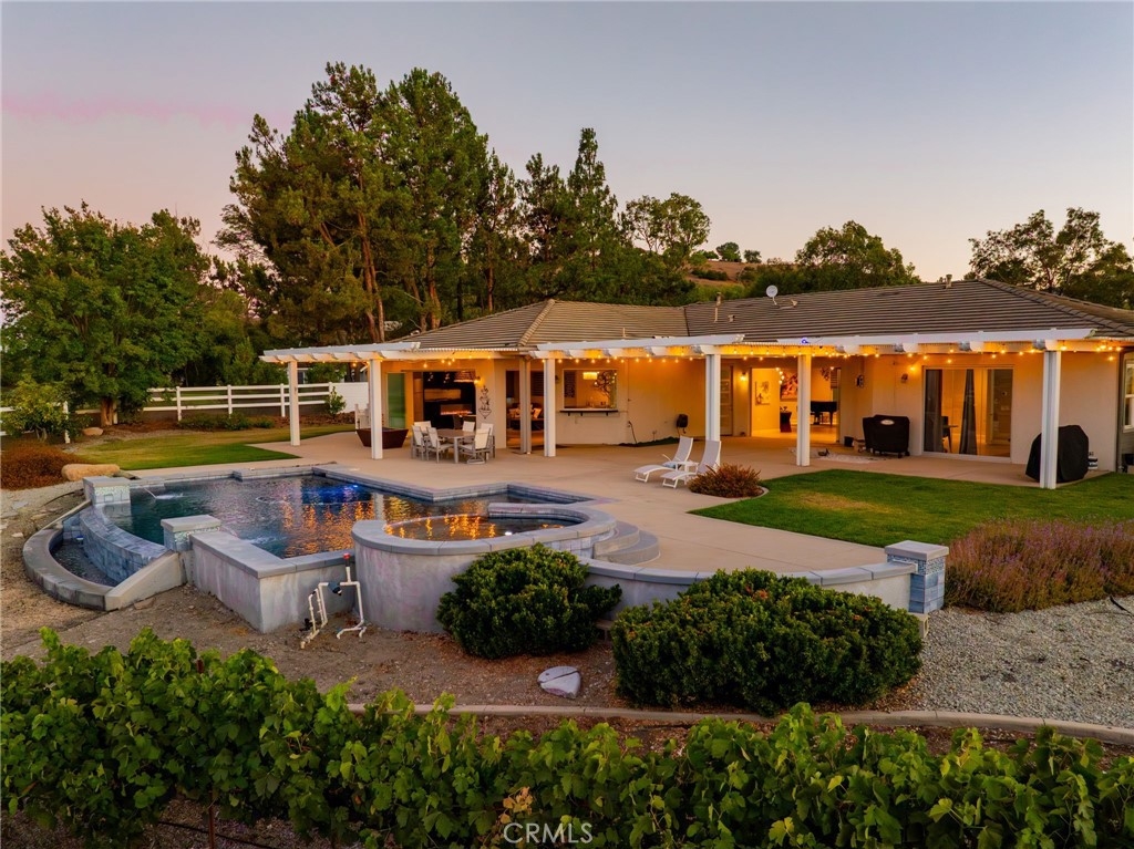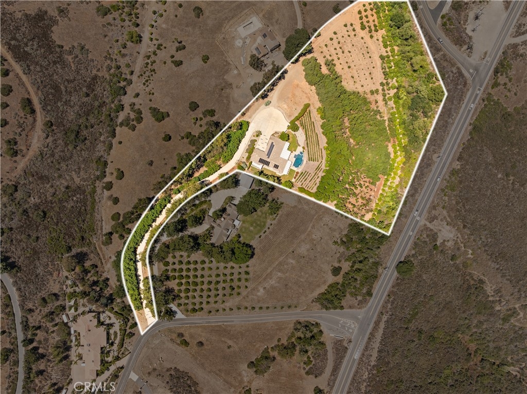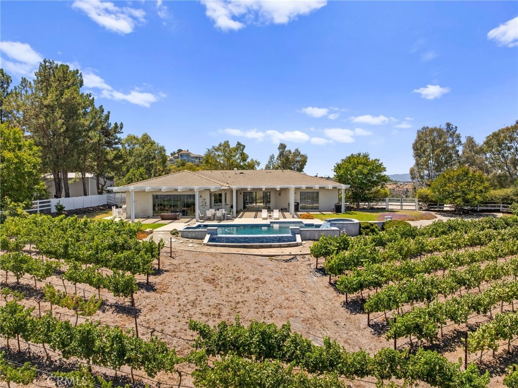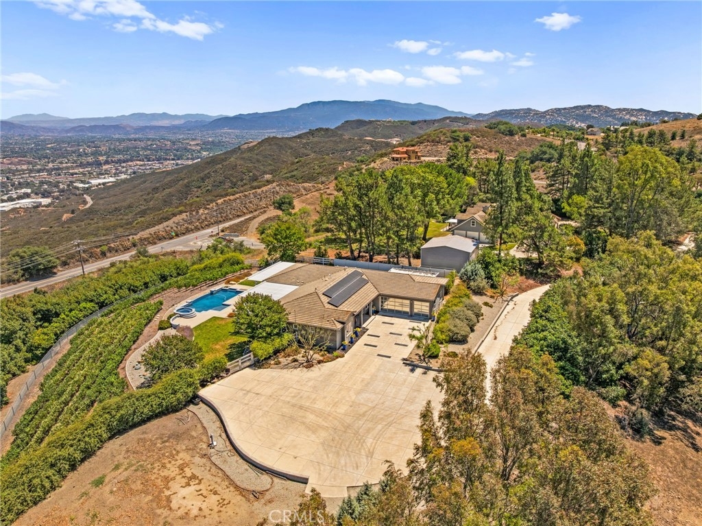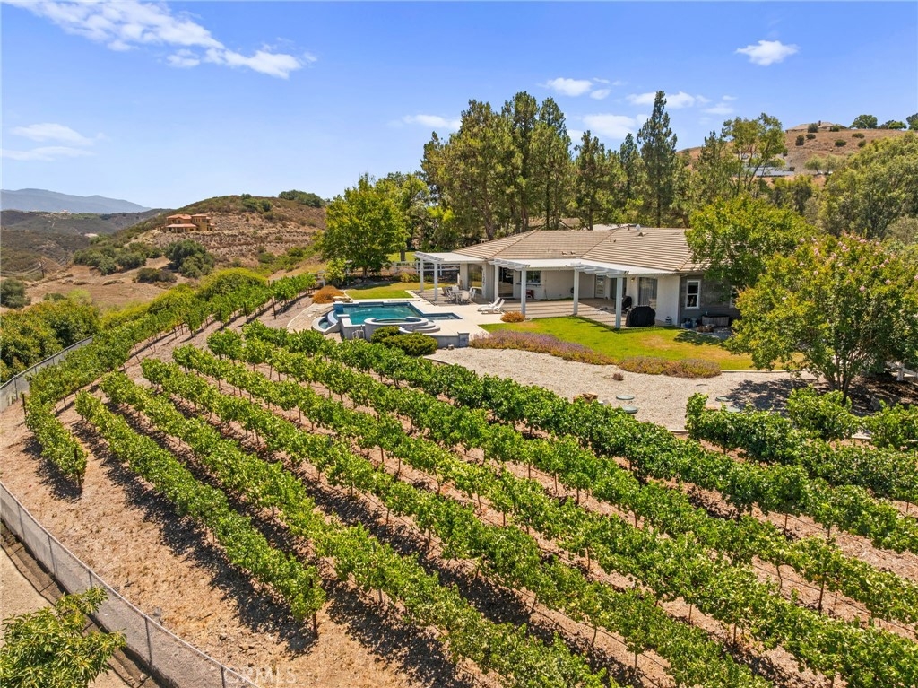 Welcome to Summit Ranch - located on the highly desirable Sycamore Mesa Road. The panoramic views of the Temecula and the De Luz valley are breathtaking. This fully remodeled luxury retreat seamlessly blends modern sophistication with income-producing prestige. From the moment you approach the grand custom steel front door, this property makes a statement of elegance and craftsmanship. The open-concept great room is anchored by a contemporary fireplace and a custom media cabinet that artfully conceals the TV, creating a sleek entertainment experience. The modern chef’s kitchen is a culinary masterpiece, featuring a Wolf double oven with custom ventilation, a full-size dishwasher plus a dedicated stemware dishwasher, a microwave, and a warming drawer. Walls of full-glass collapsible windows frame breathtaking views and allow natural light to flood the space, and are complemented by energy-efficient front windows and bespoke interior and exterior doors. The main suite is a true retreat, boasting an upgraded spa-inspired bathroom and a spacious walk-in closet, while the powder room reflects an equally refined design. Outdoors, the remodeled pool overlooks the property’s boutique vineyard, planted with Syrah and Cabernet grapes, while the thriving avocado grove with 450 trees offers additional income potential. With PAID solar, this estate not only embodies luxury but also efficiency and sustainability. Perfectly situated near Old Town Temecula and a scenic drive from renowned wineries, Summit Ranch is a rare opportunity to enjoy a lifestyle of modern elegance, stunning views, and multiple streams of income, all in the heart of Temecula Valley. This could be your new home or your next wonderful investment!