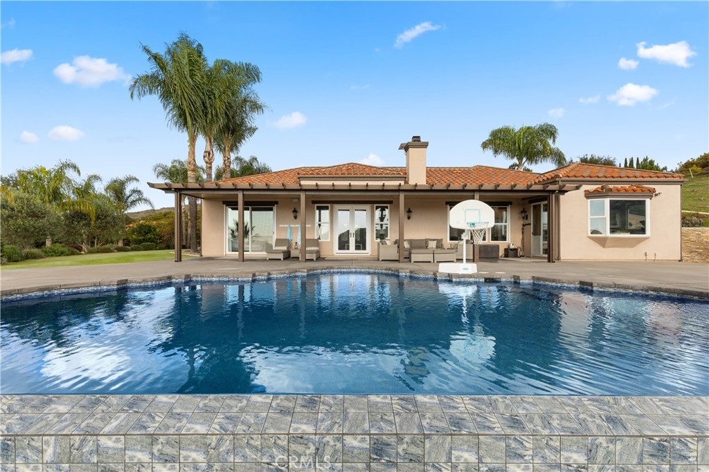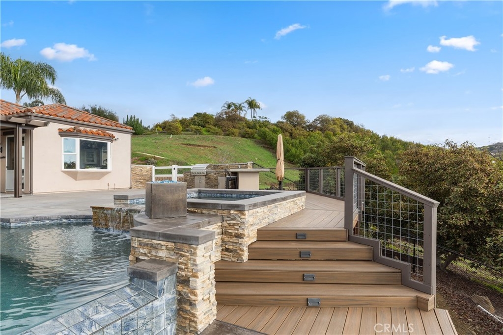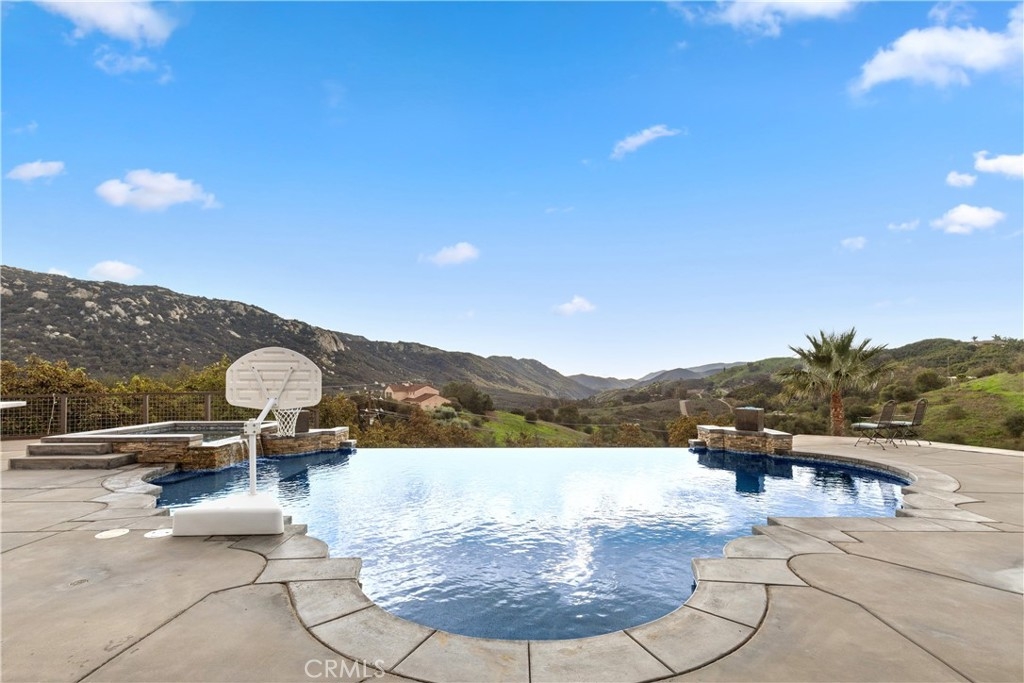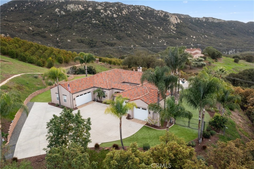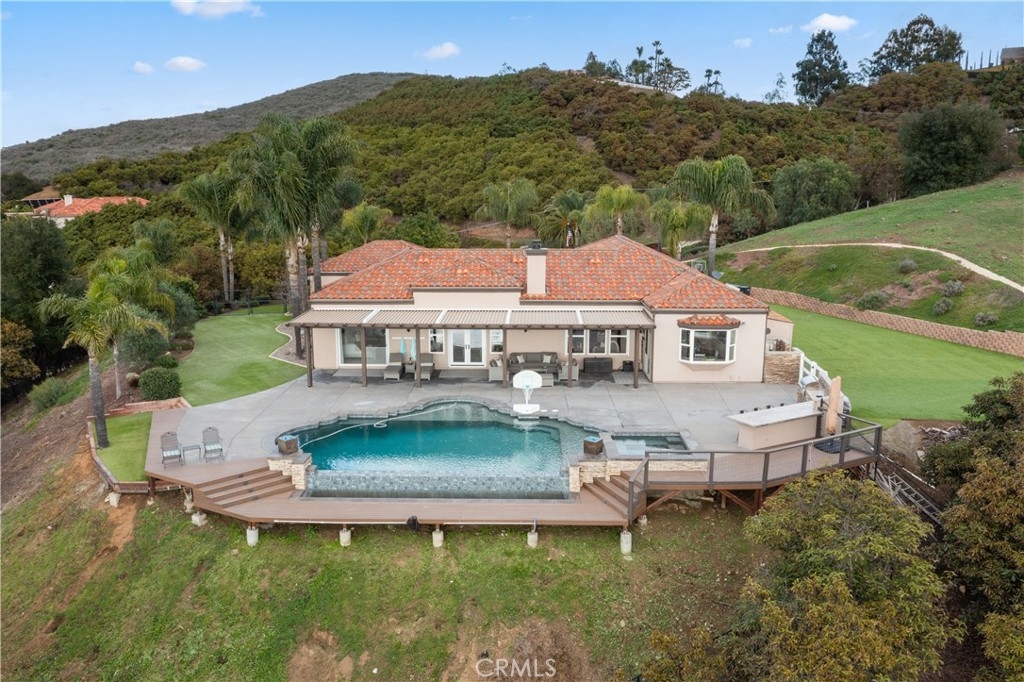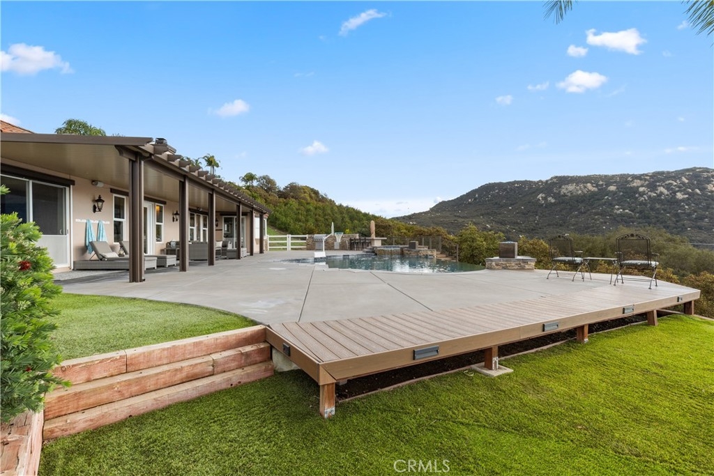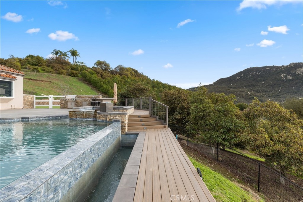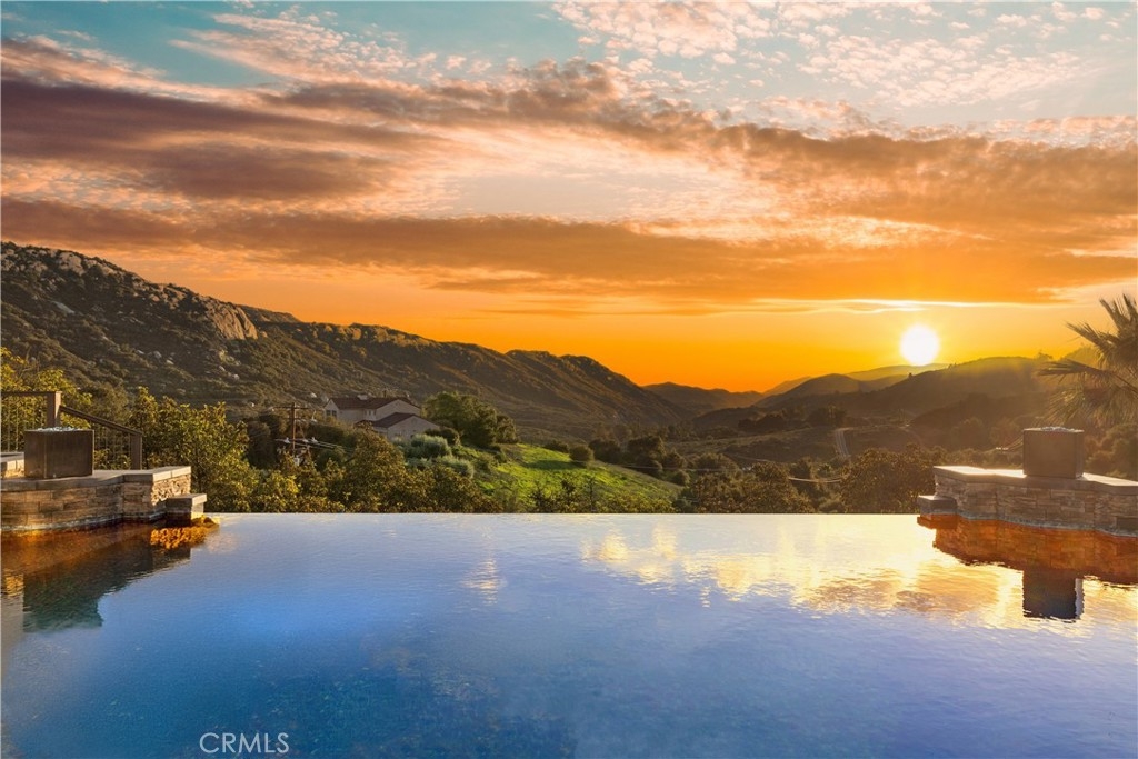 Incredible canyon and sunset views set the stage for this luxury De Luz estate pool home, perched at the end of a private cul-de-sac on over 4.55 acres of productive orchard land overlooking the protected Santa Margarita Preserve. This 4-bedroom, 3.5-bath, 3,272 sq ft residence offers the perfect blend of privacy, elegance, and resort-style living, complete with a breathtaking saltwater infinity-edge pool and spa framed by sweeping hillside vistas.