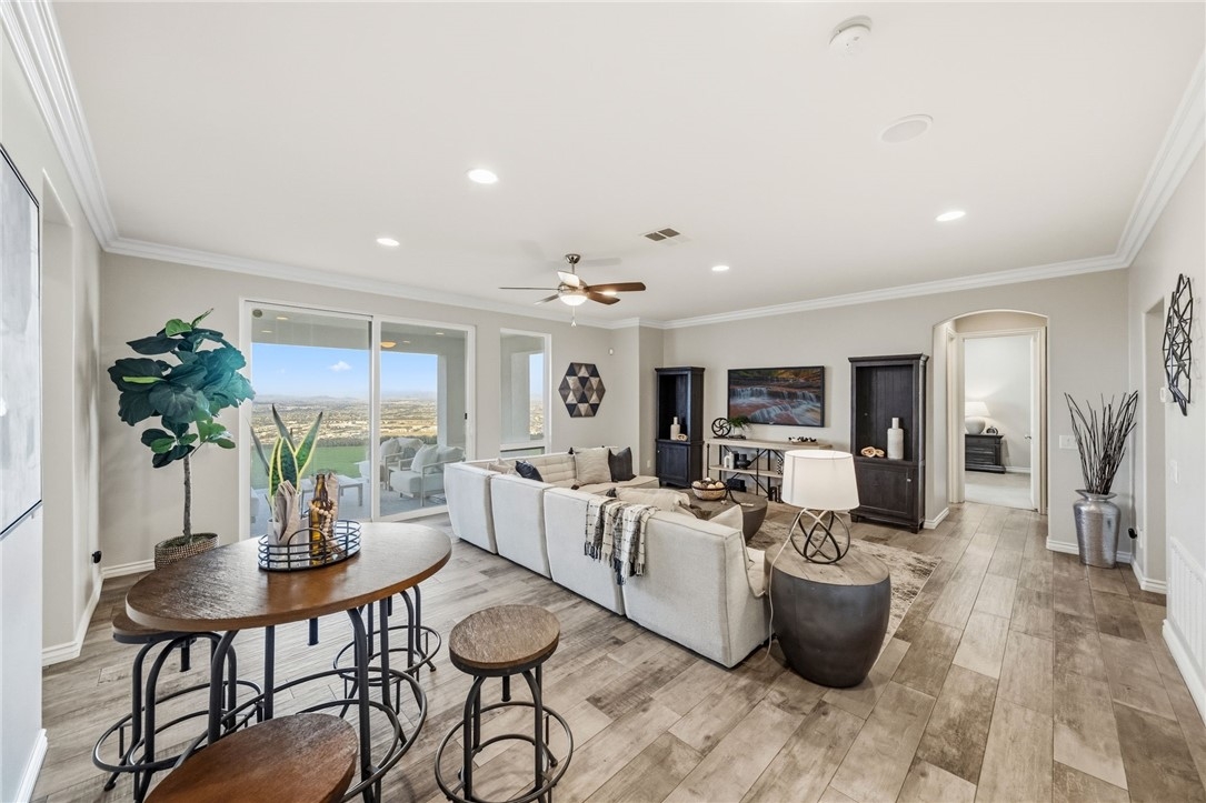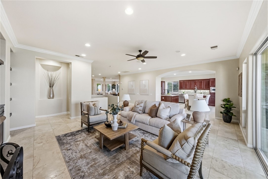 Crown Molding, Balcony, Dry Bar, Built-in Features, Living Room Balcony, Ceiling Fan(s), Pantry, Open Floorplan, Storage, Vacuum Central