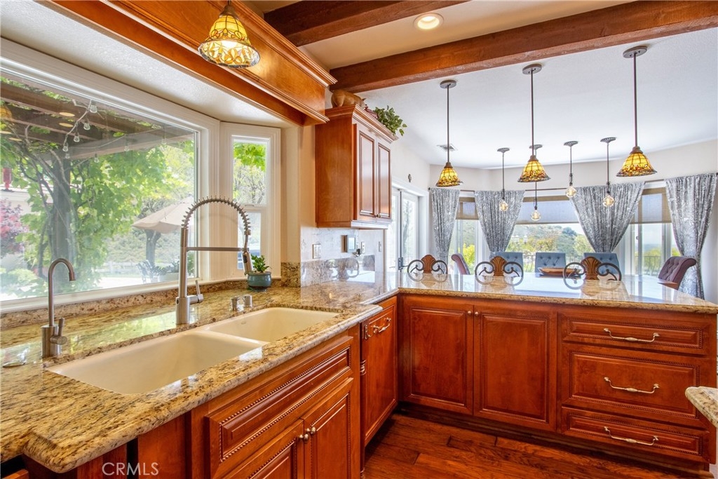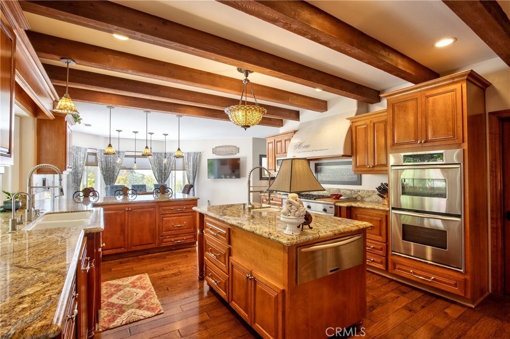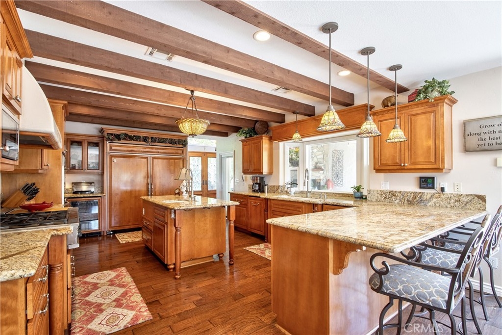 Beamed Ceilings, Built-in Features, Crown Molding, Dry Bar, Granite Counters, Open Floorplan, Pantry, Storage