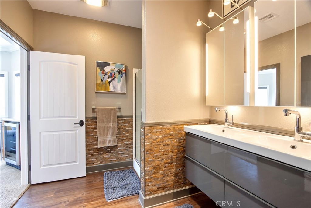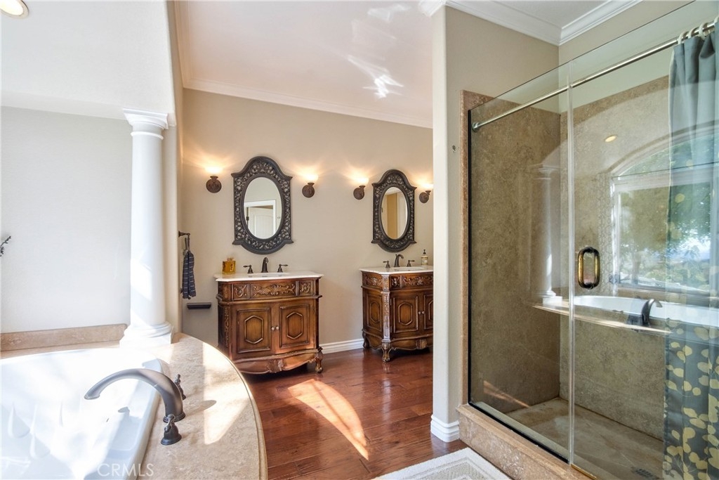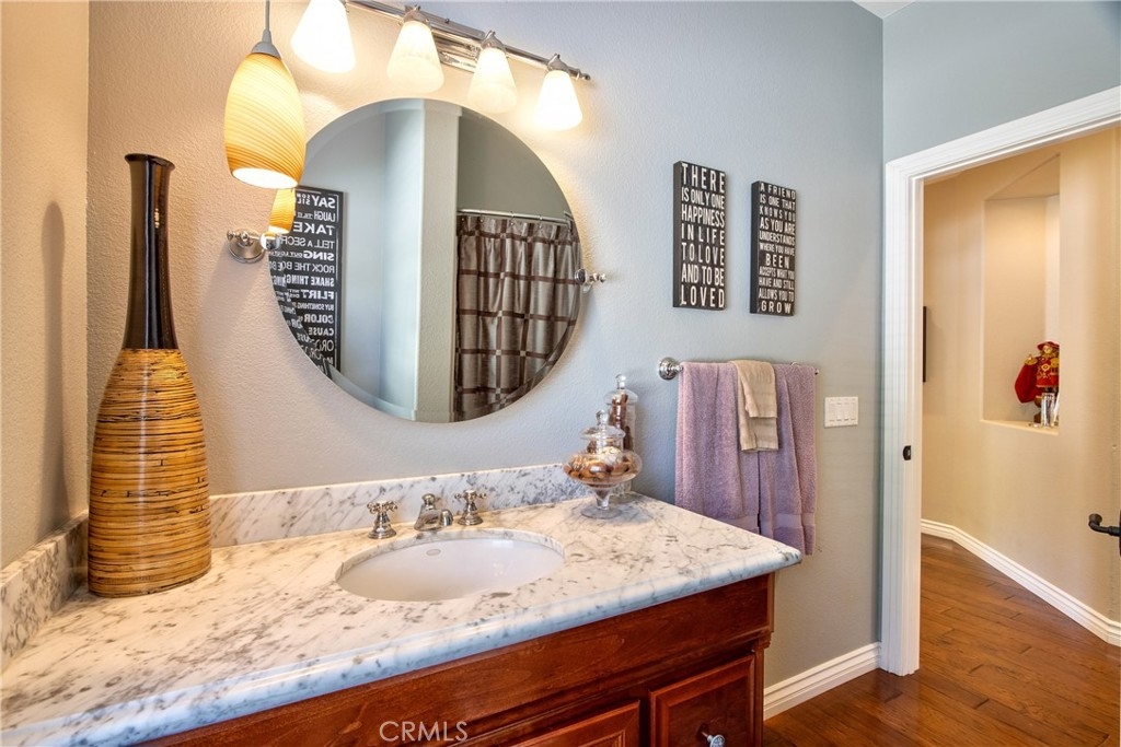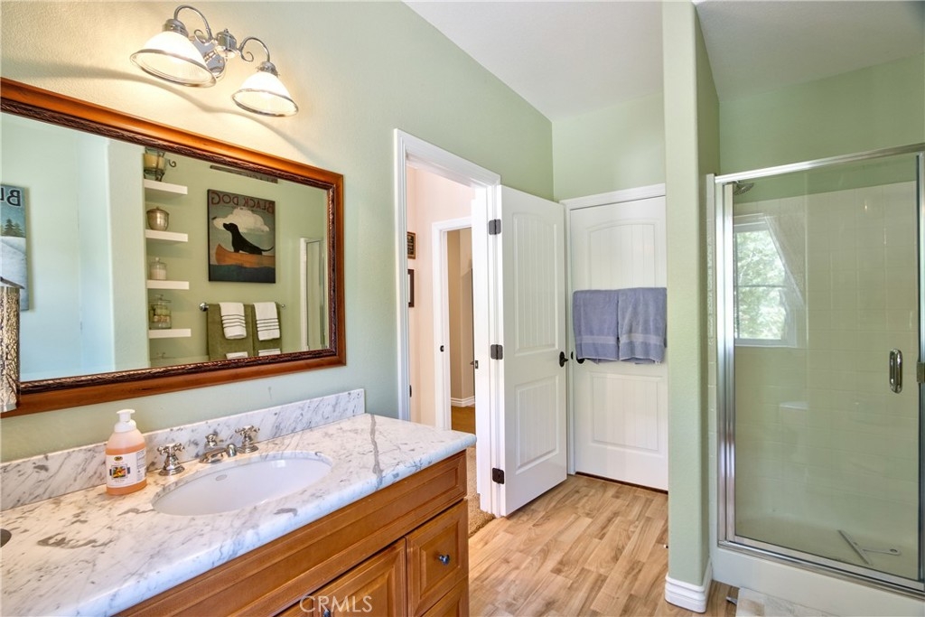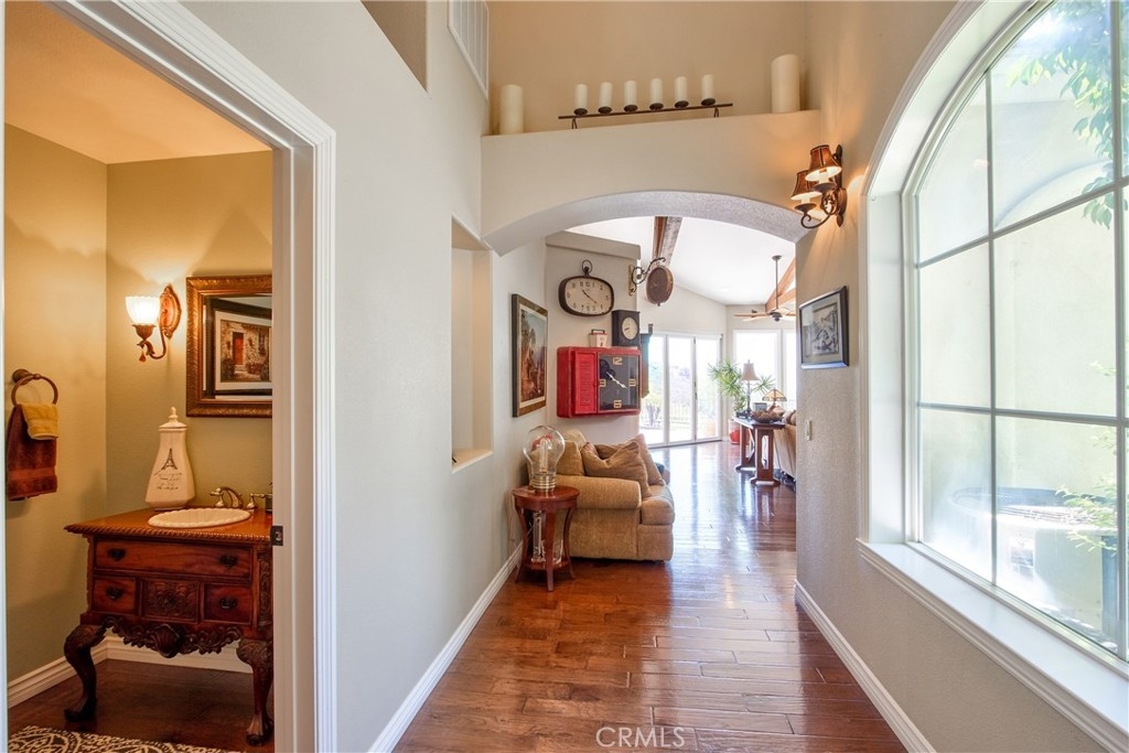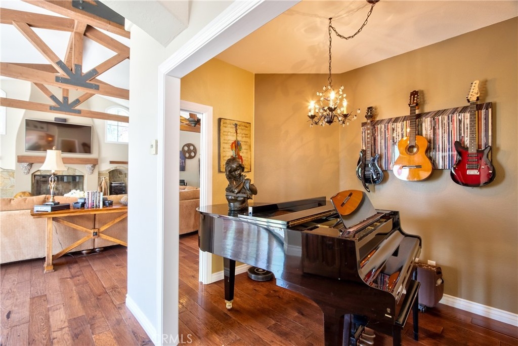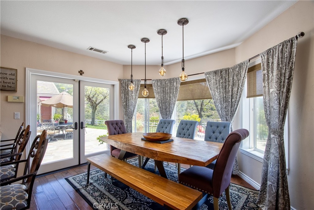 Secluded private De Luz estate, but still close to town. This custom-built French Country masterpiece spans 5,919 square feet, offering 7 Bedrooms and 5.5 Bathrooms in the main house which includes Butler's quarters. There is also a 1,263 square foot 2BR/1BA guest home with a one car attached garage. Elegance welcomes you with dual primary suites - one on each level - providing comfort and seclusion. Each suite boasts sitting areas, walk-in closets, and en suite bathrooms with his-and-hers sinks. Outdoor access graces both, while the upstairs suite enjoys a Juliet balcony. Throughout, engineered birch wood floors echo elegance, complementing beamed ceilings, a wine closet, and a music room/den. The kitchen boasts granite counters, custom cabrinetry, and a six-burner range. A wine fridge, dual ovens, oversize island with a vegetable sink and warming drawer, spacious custom refrigerator, dual dishwashers, and a breakfast bar with double door opening onto the patio make it a culinary haven. The family room enchants with high beam truss celings and a wood-burning fireplace. Oversized windows and accordion doors connect indoors and out, revealing a pool and spa oasis. Downstairs features an extra bedroom, full and half bathrooms. Upstairs, 5 bedrooms and 3 bathrooms await, including that second primary suite. That 5th room has its own entrance with an exterior spiral staircase, an efficiency kitchen, and attached bath - idea for staff or rental. The guest house, 1,263 sq. ft, offers 2BR/1BA. Handicap accessible, it features a kitchen, living room, separate laundry, and 1-car garage. Outdoors - a pool, waterfall, space, built-in BBQ, cooktop, and picturesque backdrop. Notably, professionally managed Avocado grove with 800-/+ trees adds to the allure. In summary, this De Luz gem melds equisite architecture with modern comforts. Discover refined living and create cherished memories in this exceptional residence.