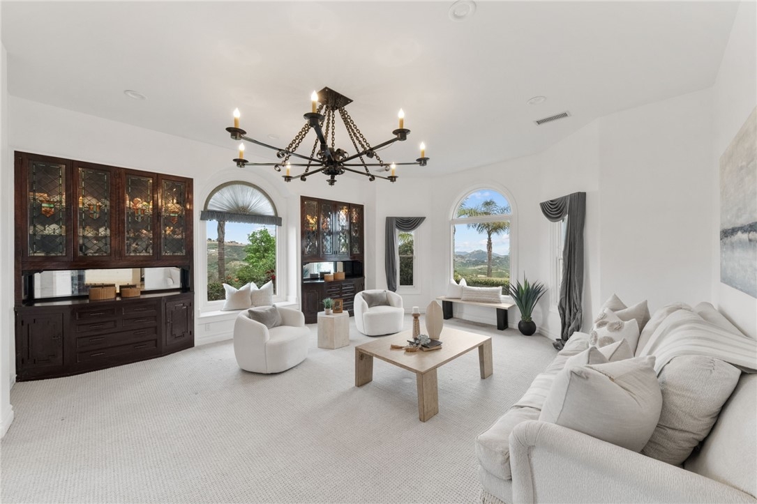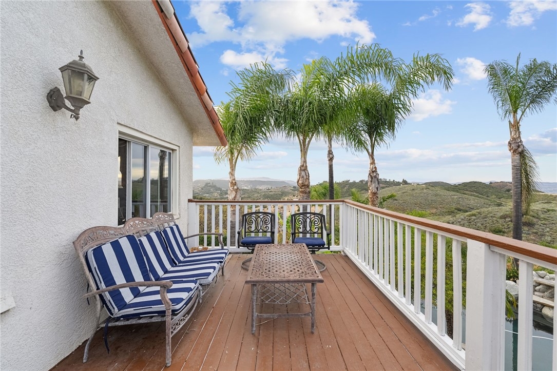 Perched at the top of the hill with breathtaking views, this Mediterranean-style estate is all about privacy and that “wow” factor the second you pull up. With 4 bedrooms and 5 bathrooms, the home takes full advantage of its setting with sweeping panoramic views across Temecula and Murrieta. The backyard is the showstopper as it sits on 5 acres with an Avocado Grove. An infinity-edge pool and spa that feel like they disappear right into the valley, creating a backdrop you just don’t come across often. It’s quiet, private, and built for those sunset evenings Temecula is known for. Inside, the layout is spacious and functional with marble flooring, a large kitchen, formal living and dining areas, and a dedicated office. The 4-car garage gives you plenty of room for cars, toys, or storage. Upstairs, the primary suite has its own private balcony where you can take in the city lights at night and unwind at the end of the day. You wouldn't believe you're only 10 minutes from town, which makes it a breeze to run errands. Whether you’re entertaining, hosting family, or just want space and privacy, this is one of those rare view properties that really delivers.
