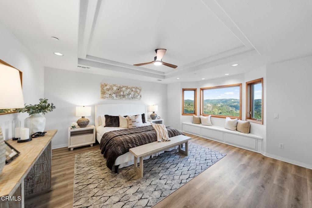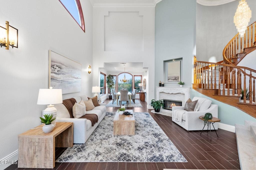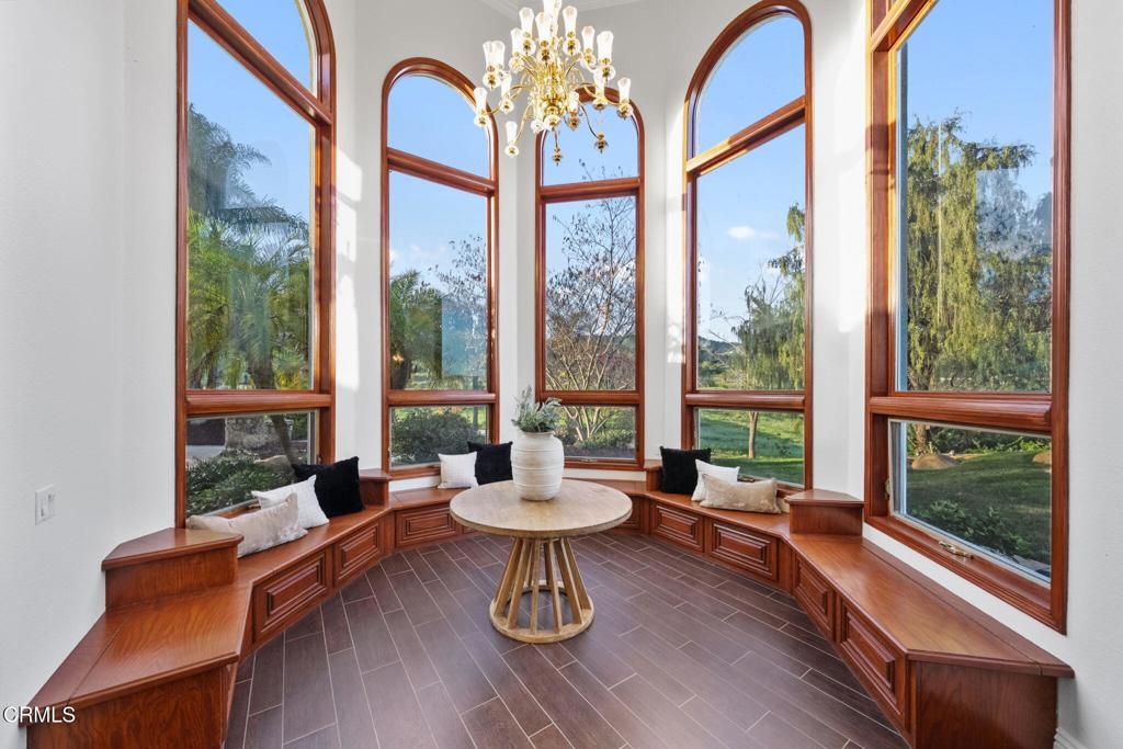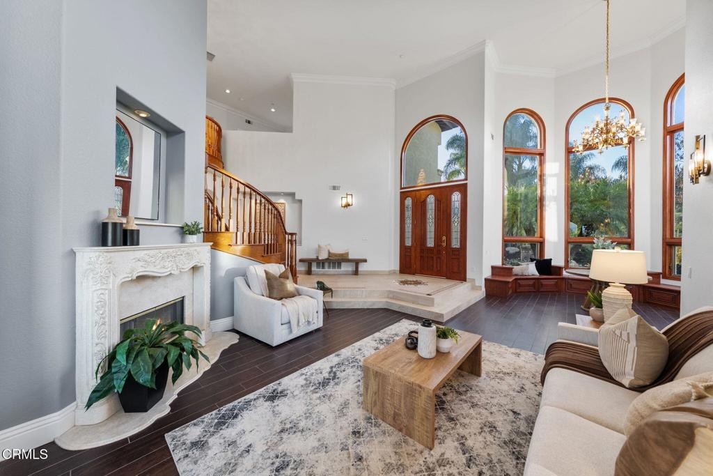 Nestled in the picturesque hills of De Luz, this stunning Mediterranean villa spans 9 acres of breathtaking landscape and offers the ultimate hilltop retreat. A private gated entry and charming circular driveway welcome you home, surrounded by lush, professionally designed grounds.De Luz is celebrated for its serene beauty & close-knit community, making it one of the most desirable areas in Temecula. Enjoy the tranquility of rural living while conveniently located near the vibrant charm of Old Town Temecula & the renowned Temecula wine country. Whether you're indulging in local wines or exploring quaint shops and eateries, everything you love is within close proximity. Inside, soaring ceilings and a beautifully tiled entryway bathed in natural light from elegant arched windows create a grand first impression. A unique sitting area with built-in bench seating and a statement chandelier provides a perfect place to unwind while gazing at the stunning property views. The formal living room features a cozy fireplace with ornate details and flows seamlessly into the distinctive dining that frames calm, scenic views with architectural windows.The spacious kitchen is a chef's dream, equipped with Viking and Wolfe appliances, onyx countertops, a center island with vegetable sink. It opens beautifully to the expansive family room with a stacked-stone fireplace and window-lined dining nook overlooking the lush backyard. A versatile downstairs office with French doors can easily function as a 5th bedroom, and the updated bathroom features a walk-in shower, new vanity, and modern finishes. A laundry room with utility sink adds convenience. Ascend the sweeping staircase to the luxurious primary suite and additional bedrooms. The oversized master retreat offers its own fireplace and sitting area, built-ins, and French doors opening to a private veranda with serene views. The spa-inspired bathroom includes dual sinks, soaking tub with sweeping view, separate shower, and walk-in closet. Three additional bedrooms and a guest bath with quartz countertops complete the upper level. Outside, enjoy a resort-style pool and spa area, mature trees, garden beds, a built-in gas fire pit, perfect for entertaining family and friends. With a three-car garage and paid solar, this home is functional as it is beautiful. This Mediterranean villa is more than a residence - it's a lifestyle, offering privacy, beauty, and the best of California living.