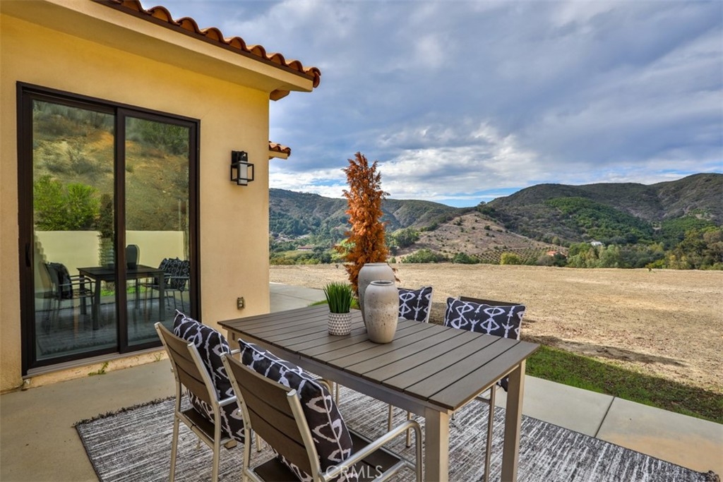 Absolutely Stunning Blend of Andalusian and Modern Architecture! Welcome Home! Unique Blend of Enchanting Tradition and Elegant Contemporary Comforts will Surely Captivate Your Senses. This Timeless Beauty is Perched above De Luz Road, Offering Breathtaking Panoramic Views of the Surrounding Landscape from Almost Every Window and Every Patio. Must See this Modern Minimalist Design; Offering a Refreshing and Distinctive Character and a Perfect Spot for Relaxation and Entertaining. High-End Features Include Leicht Custom Kitchen, Three Heat & Glo Linear Fireplaces, 10 Foot Ceilings Throughout and 17 Foot Ceilings in Foyer and Gathering Room, Surround Sound Entertainment System with 75"Sony OLED with Apple TV in Family Room, Statuario Italian Porcelain in Kitchen and Baths, 30x30 Italian Tile Throughout, Glass Enclosed Wine Cellar, Miele M Touch Appliances, Miele Six Burner Gas Stove with Electric Oven, Dishwasher, Steam Oven and Espresso/Coffee, Light Touch Built-in Refrigerator/Freezer, Axor "Shower Heaven" in Primary Suite, California Closets Vertuoso Collection, Axor Faucets, Duravit Sinks and Wall Hung Toilets Throughout (In-wall units by Toto), All Interior Wall Insulated for energy efficiency and noise reduction, 2x6 Construction exterior and interior walls, Large Capacity Maytag Washer and Dryer, Two Navies Tankless Water Heaters, Two Seer 17 Cooling Systems with EcoBee Smart Thermostats, Outdoor Security Cameras and So Much More! Large Backyard is Ready for Your Ideas and Design and Over Eight Acres of Land is Ready for your Green Thumb! Just Minutes from Historic Old Town Temecula (EST. 1859) and Temecula Wine Country, World Class Golf, Casinos, Shopping, Dining and Excellent Schools. Must See!