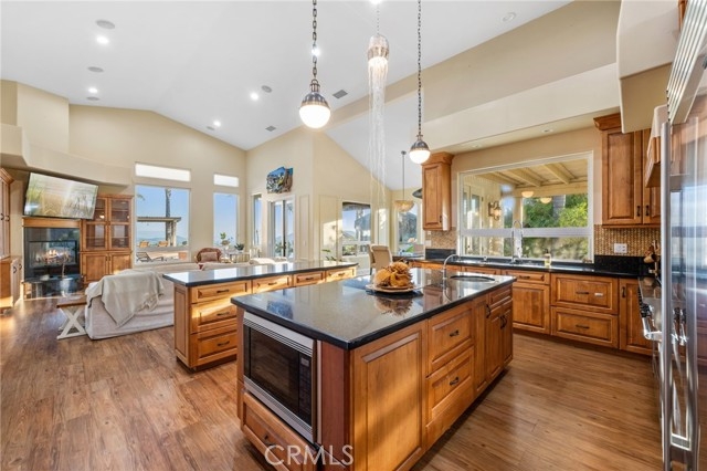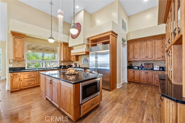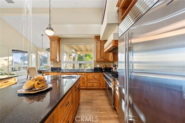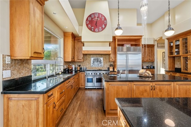 wood cabinets and a six-burner Viking stove, Sub Zero