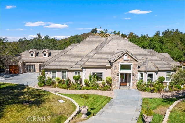 CUSTOM SINGLE-LEVEL CHATEAU ESTATE serenely tucked amid nature in the highly desirable community of De Luz on almost 5 flat acres makes this a rare find! You are welcomed through the private gated entry flanked with stone pillars amongst the oak trees to an extensive circular driveway leading to this gorgeous 4,500 sq. ft. single story home. The covered entry with leaded glass doors open to the grand foyer and a formal dining room both with high coffered ceilings. A versatile sitting room with double doors that would make the perfect office or music room. The numerous arched doorways, wide hallways, plantation shutters, abundant windows, recessed and natural lighting are featured throughout the home. The stunning well-appointed gourmet kitchen offers high-end stainless-steel appliances, an oversized refrigerator/freezer, 6 burner gas cooktop with hood, granite countertops, an oversized island with a food prep sink, and a separate breakfast bar seating area are all designed for easy entertaining. The modern floor plan seamlessly connects the additional eating area with built-in cabinetry & granite counters to the amazing family room with coffered ceilings and a stone fireplace. All four luxurious bedrooms are complete with en-suite bathrooms. 3 bedrooms are in a separate wing of the home with extra “flex” space - perfect for multi-generational living. The primary bedroom suite with fireplace has direct access to the outdoors offering beautiful, serene views. The newly remodeled spa-like primary bath features an oversized shower, a separate soaking tub, double vanities and a walk-in closet. Double French doors off the family room open to an spacious, covered patio for al-fresco dining or cocktails – equipped with an fireplace plus the outdoor kitchen and BBQ grilling station! The beautiful park-like backyard nestled among the trees transports you to another place and time and is the perfect setting to host large events or intimate cookouts. Part of the 3 car garage has been transformed into a game room with French Doors, ceramic wood-like tile flooring, a vanity w/sink and a wall A/C unit. This could also be an ideal space for an art studio, workout area, a craft room or an office for professionals with clients. Plenty of acreage to add a pool, workshop, casita/ADU and room for RV or horses. Conveniently located to Old Town Temecula, shopping, wineries and quick access to the freeway. This splendid property offers endless opportunities. LOVE WHERE YOU LIVE!