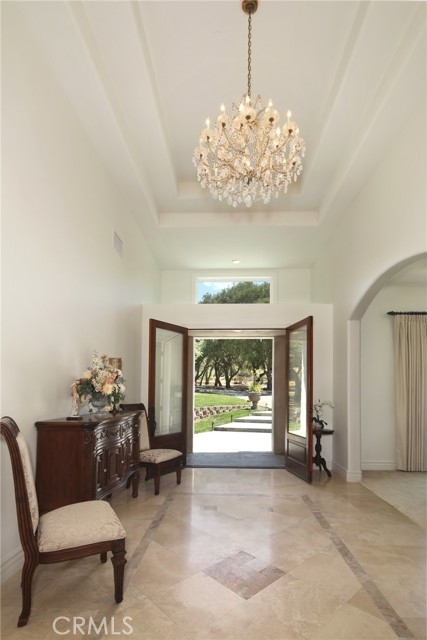 CUSTOM SINGLE-LEVEL CHATEAU ESTATE serenely tucked amid nature in the highly desirable community of De Luz on almost 5 flat acres makes this a rare find! You are welcomed through the private gated entry flanked with stone pillars amongst the oak trees to an extensive circular driveway leading to this gorgeous 4,500 sq. ft. single story home. The covered entry with leaded glass doors open to the grand foyer and a formal dining room both with high coffered ceilings. A versatile sitting room with double doors that would make the perfect office or music room. The numerous arched doorways, wide hallways, plantation shutters, abundant windows, recessed and natural lighting are featured throughout the home. The stunning well-appointed gourmet kitchen offers high-end stainless-steel appliances, an oversized refrigerator/freezer, 6 burner gas cooktop with hood, granite countertops, an oversized island with a food prep sink, and a separate breakfast bar seating area are all designed for easy entertaining. The modern floor plan seamlessly connects the additional eating area with built-in cabinetry & granite counters to the amazing family room with coffered ceilings and a stone fireplace. All four luxurious bedrooms are complete with en-suite bathrooms. 3 bedrooms are in a separate wing of the home with extra “flex” space - perfect for multi-generational living. The primary bedroom suite with fireplace has direct access to the outdoors offering beautiful, serene views. The newly remodeled spa-like primary bath features an oversized shower, a separate soaking tub, double vanities and a walk-in closet. Double French doors off the family room open to an spacious, covered patio for al-fresco dining or cocktails – equipped with an fireplace plus the outdoor kitchen and BBQ grilling station! The beautiful park-like backyard nestled among the trees transports you to another place and time and is the perfect setting to host large events or intimate cookouts. Part of the 3 car garage has been transformed into a game room with French Doors, ceramic wood-like tile flooring, a vanity w/sink and a wall A/C unit. This could also be an ideal space for an art studio, workout area, a craft room or an office for professionals with clients. Plenty of acreage to add a pool, workshop, casita/ADU and room for RV or horses. Conveniently located to Old Town Temecula, shopping, wineries and quick access to the freeway. This splendid property offers endless opportunities. LOVE WHERE YOU LIVE!